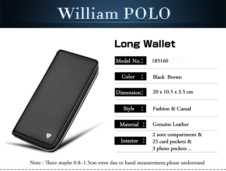 Длинный кошелек Williampolo для мужчин, простой вместительный бумажник с несколькими кармашками для карт, многофункциональная Сумочка, pl185160 icon star icon star icon star icon star icon star