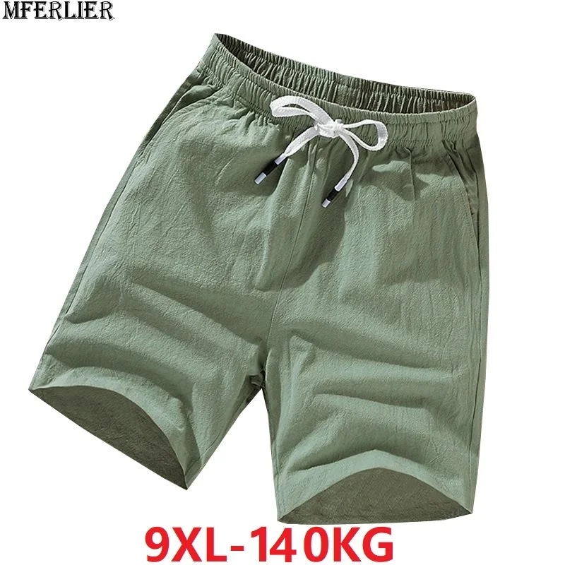 Шорты мужские хлопковые в китайском стиле, повседневные штаны из льна и размера плюс, домашние стрейчевые, большие 6XL 7XL 8XL 9XL, зеленые оранжевые, летние