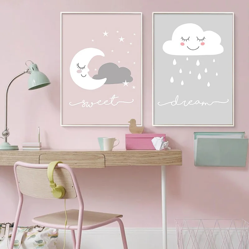 Луна, звезда, облако, планшетофон для детей, Настенная картина на х...