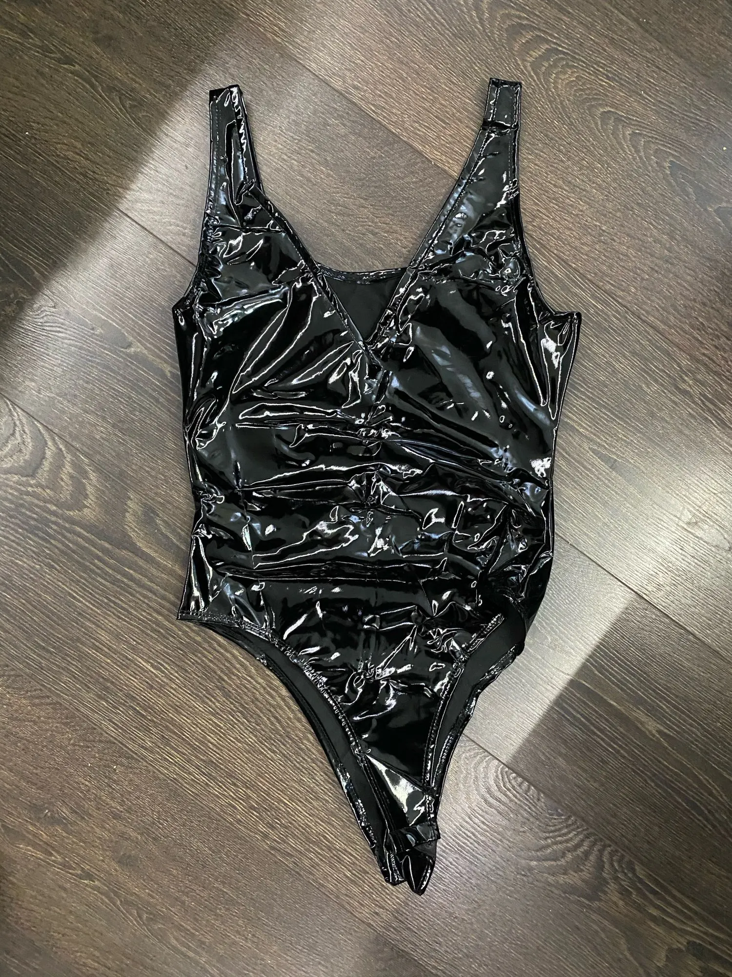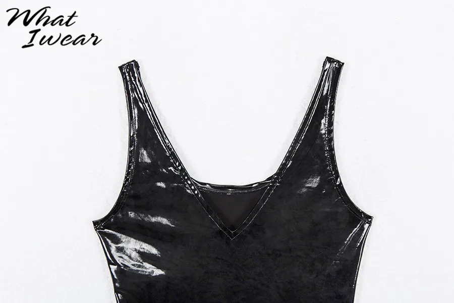 Женские боди из искусственной кожи, сексуальные праздничные черные облегающие комбинезоны без рукавов с V-образным вырезом, весенние Комбинезоны на бретелях-спагетти, новинка