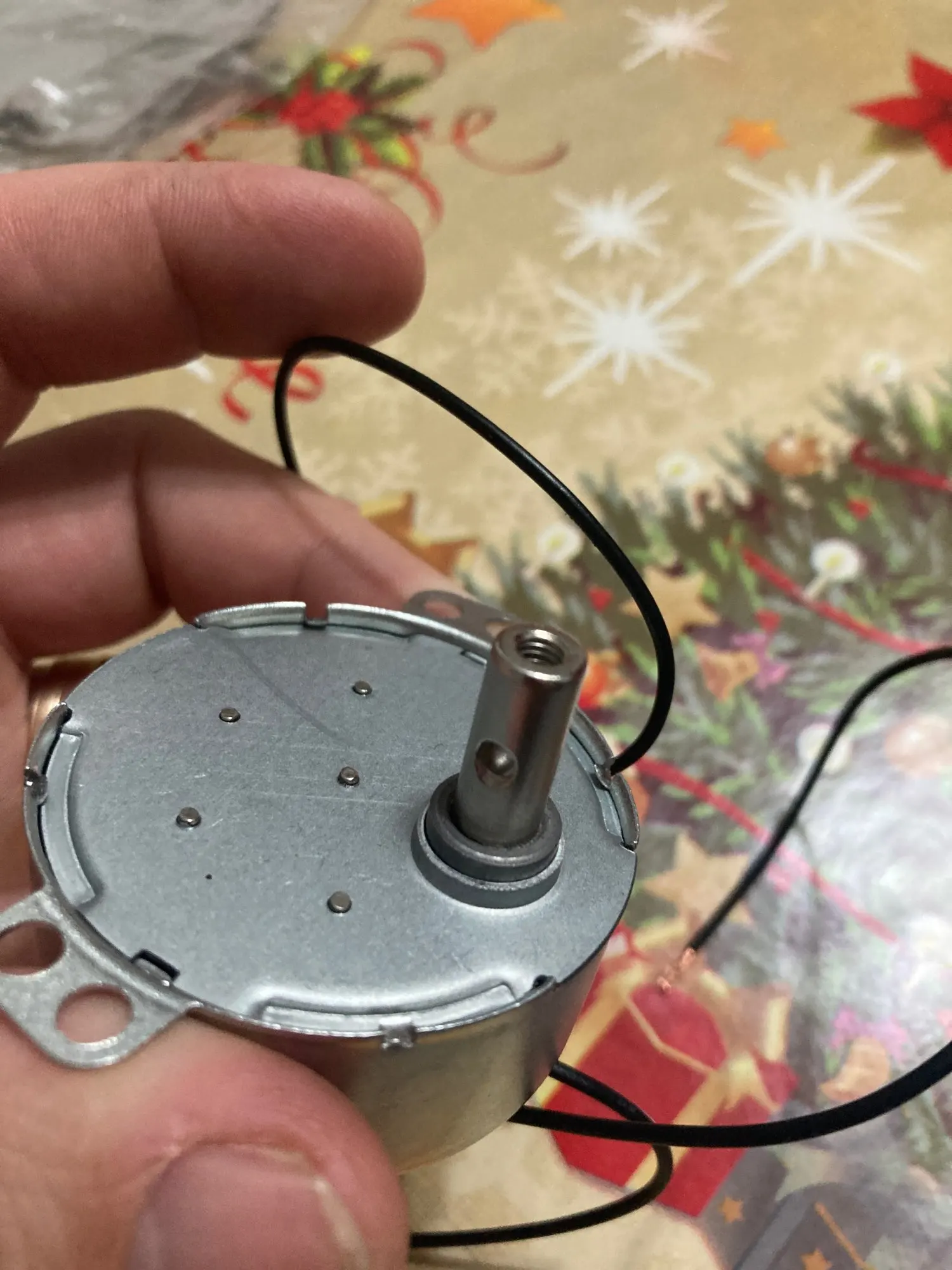 Поставил на камин , крутит вал с блёстками и создаёт иллюзию горения огня. Сгорел двигатель и искал замену. Подошёл по всем характеристикам. доволен.