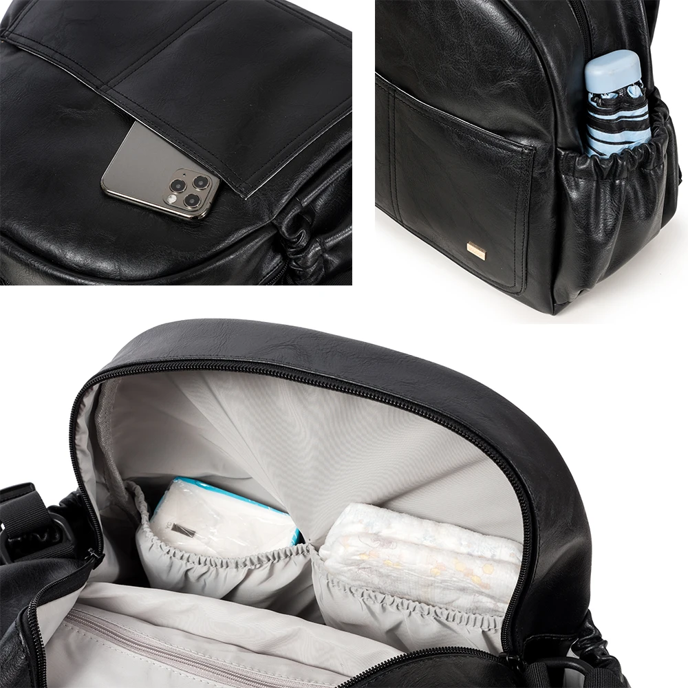 Сумка для мам черная для подгузников, модная вместительная сумка для подгузников с 2 ремнями, дорожный рюкзак для малышей