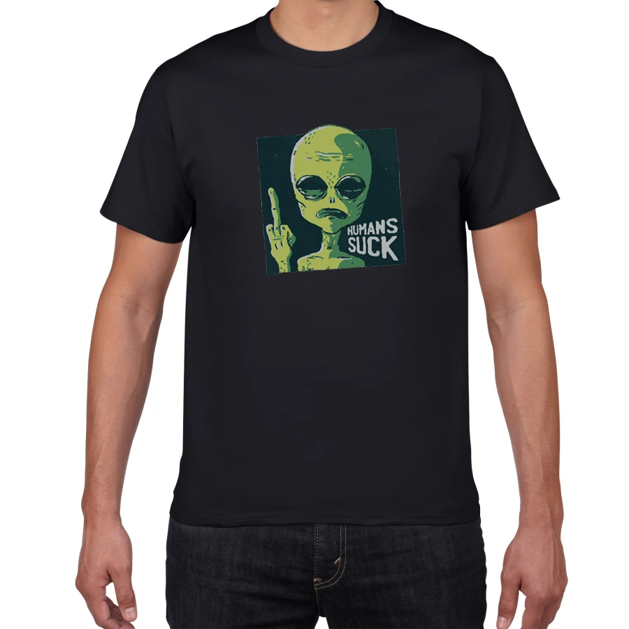 Мужская футболка с инопланетянином, забавная футболка из 100% хлопка, черная уличная одежда высокого качества, Мужская одежда, 2019