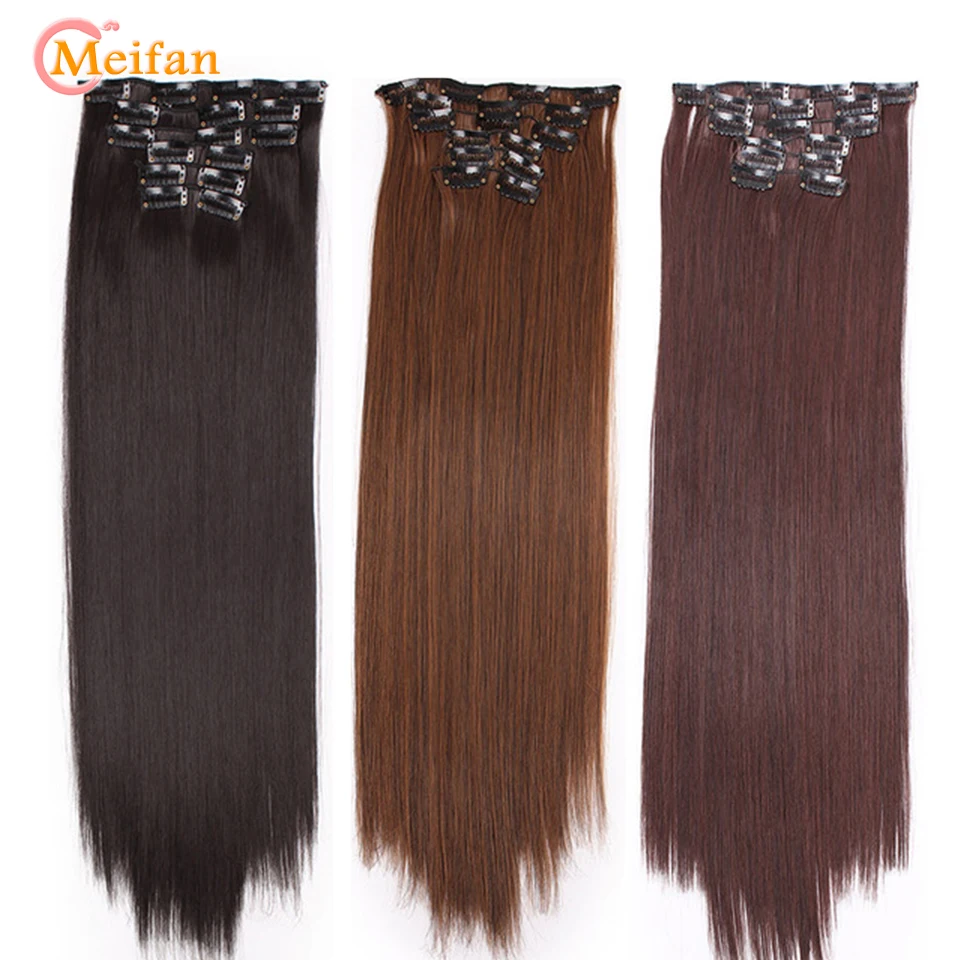 Длинные шелковистые прямые шиньоны MEIFAN, 24 дюйма, 6 шт.компл., с 16 зажимами, термостойкие синтетические волосы для наращивания
