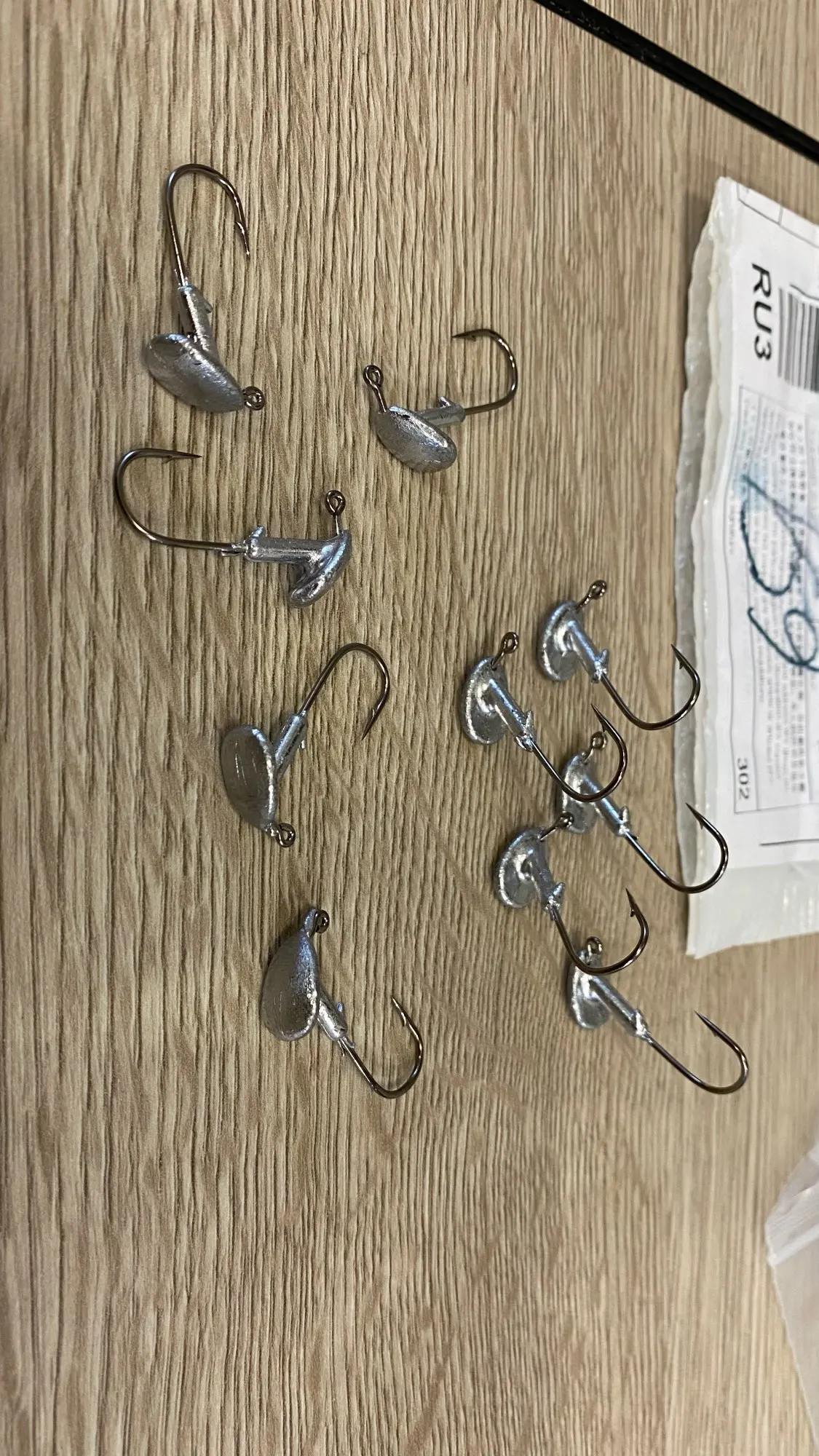 отправлено быстро, доехали тоже. сделано аккуратно, крючки острые. весной будем пробовать!) на фото 3,5 и 5 грамм