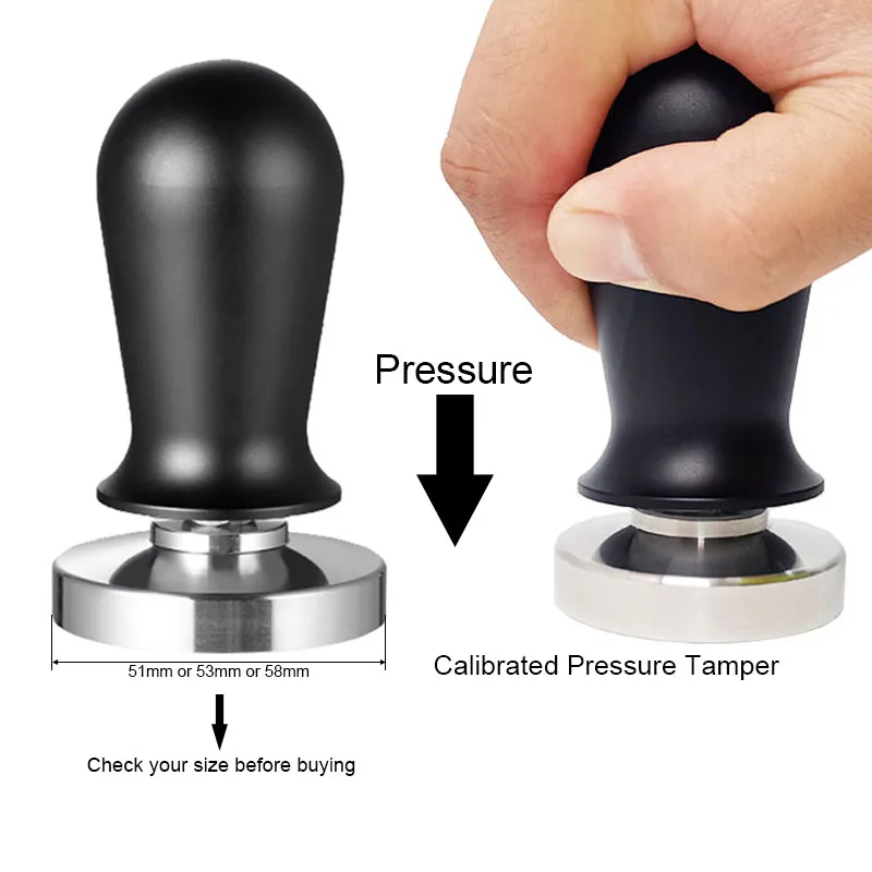 Уплотнитель для эспрессо с откалиброванным давлением, 5158 мм, эластичный, нержавеющая сталь 304, молоток для кофейного порошка, алюминиевая ручка