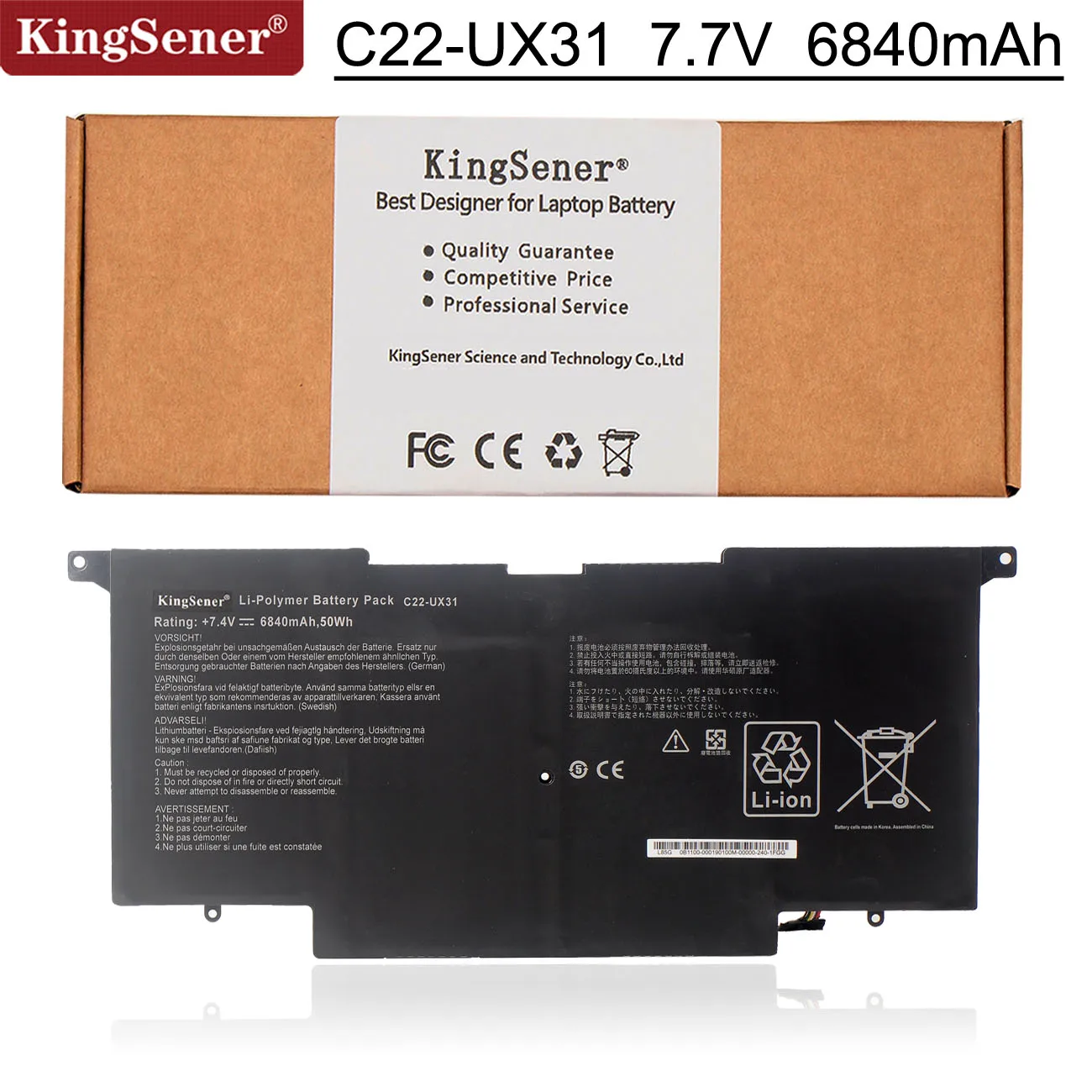 KingSener C22-UX31 Аккумулятор для ноутбука ASUS Zenbook UX31 UX31A UX31E UX31E-DH72 C22-UX31 C23-UX31 7,4 V 50WH6840mAh