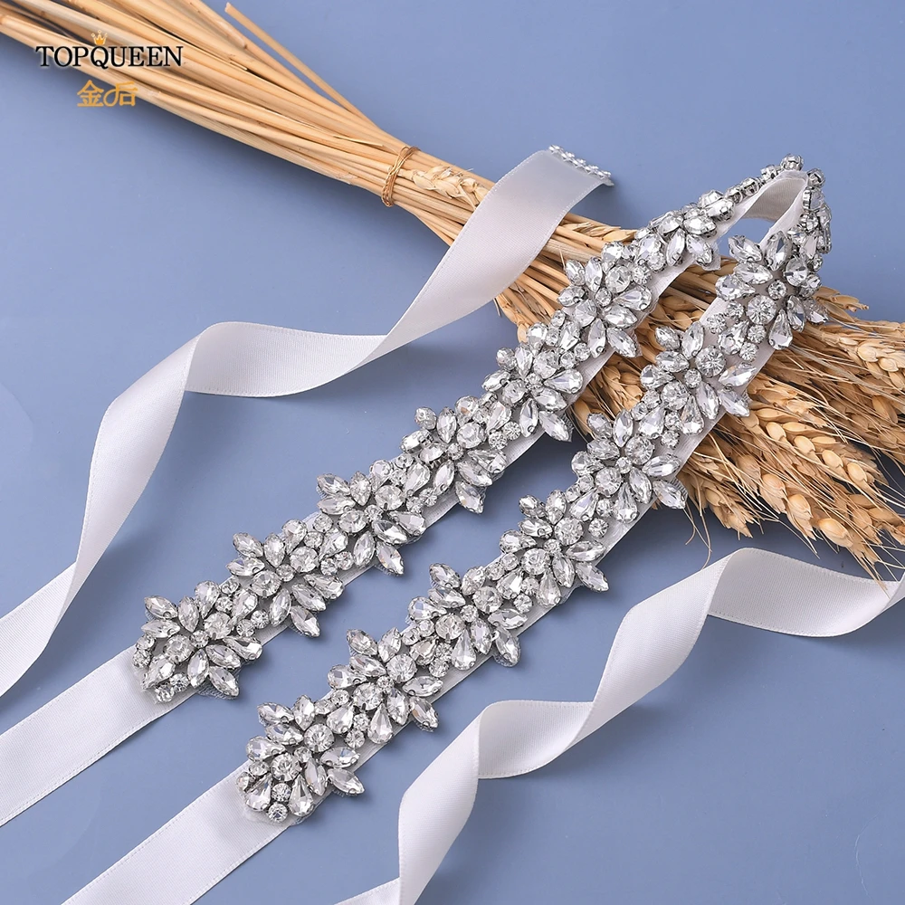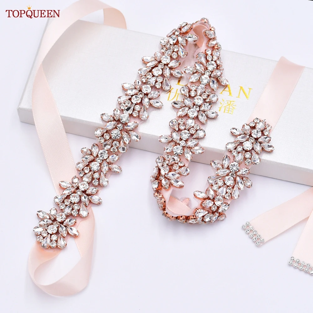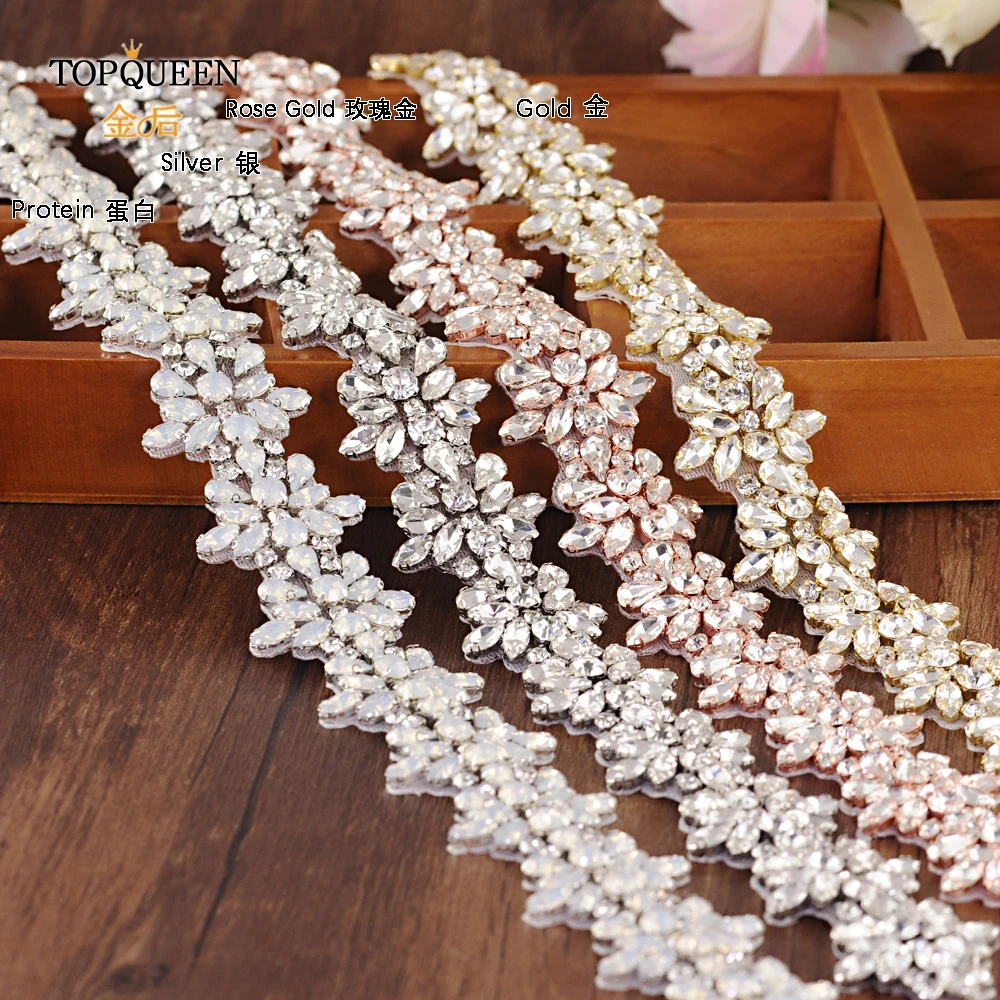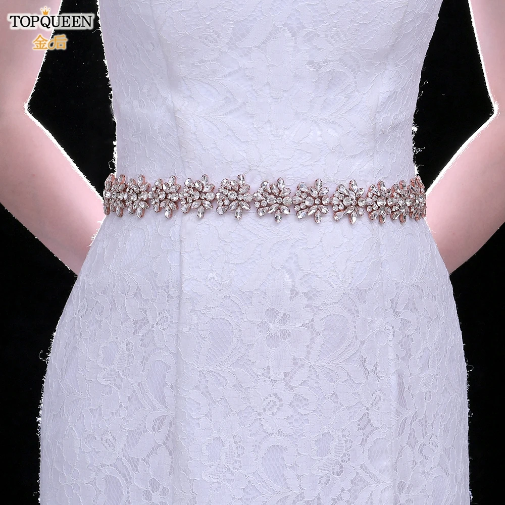 Женские Свадебные ремни TOPQUEEN S269, серебристыеЗолотыерозовые золотые стразы, вечерние свадебные аксессуары с аппликацией