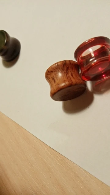 Molto carino anche se la placca in metallo si rovina a contatto con l'acqua. La scavatura del legno è molto utile per evitare che il dilatatore scivoli dal lobo e si perda.