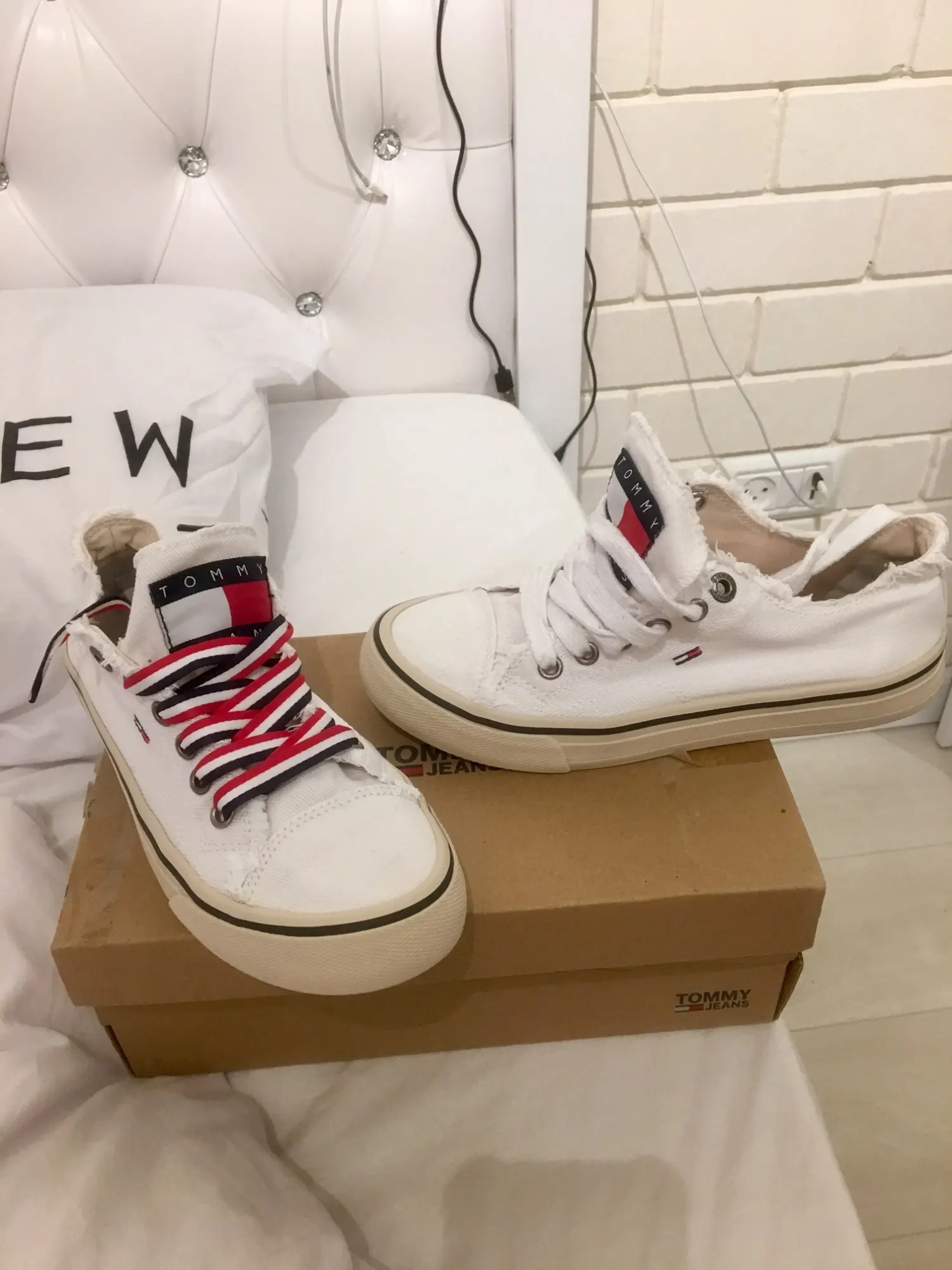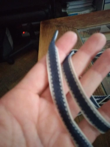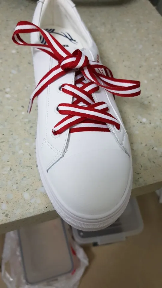 Очень симпатичные шнурки, похожи на плотную ленту. На белых кедах Хилфигер смотрится здорово, прям цвета бренда. Шнурки не линяют (на всякий случай постирала их). Единственное, покрепче завязывать надо, иначе развязываются во время носки, пока новые. В Москву доставили быстро, около 2х недель. С продавцом не общалась.