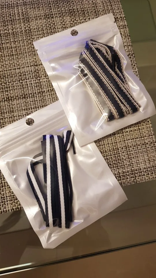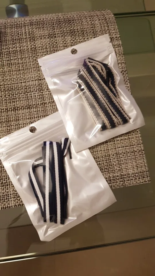 Каждая пара шнурков в отдельной индивидуальной упаковке с зип-запком. Качество хорошее. Доставка в Минск 1,5 месяца. Товар и продавца очень рекомендую.
