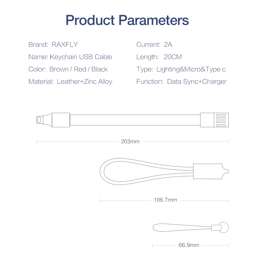 Портативный кожаный зарядный кабель 2A с брелоком, Micro USB Type-C...