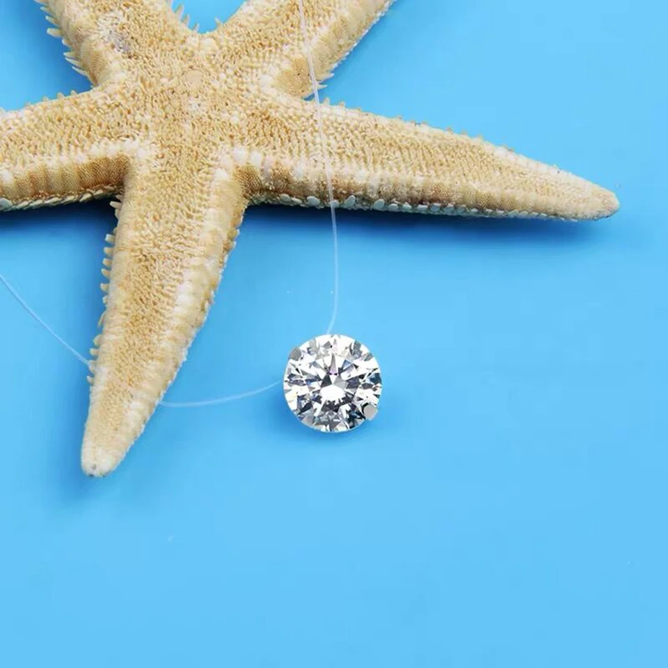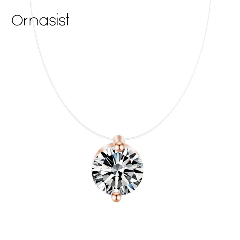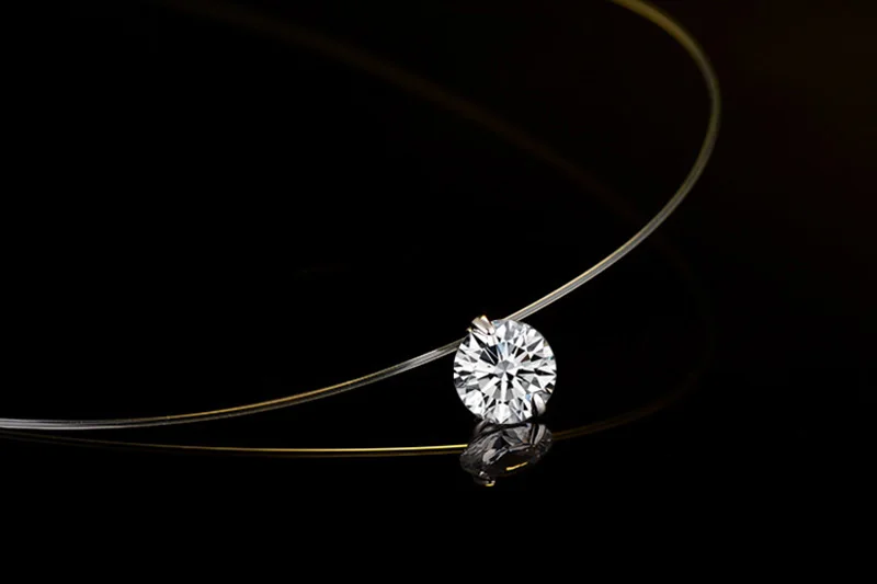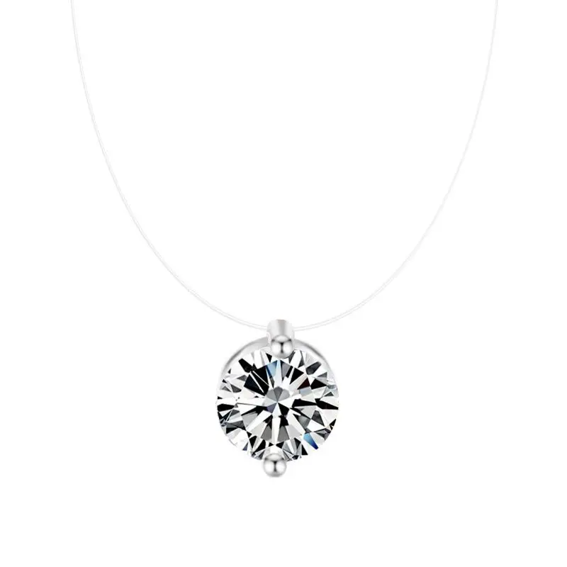 Круглый ААА Циркон невидимая прозрачная подвеска на леске ожерелье для женщин Колье металлическое золото серебро цвет колье ожерелья