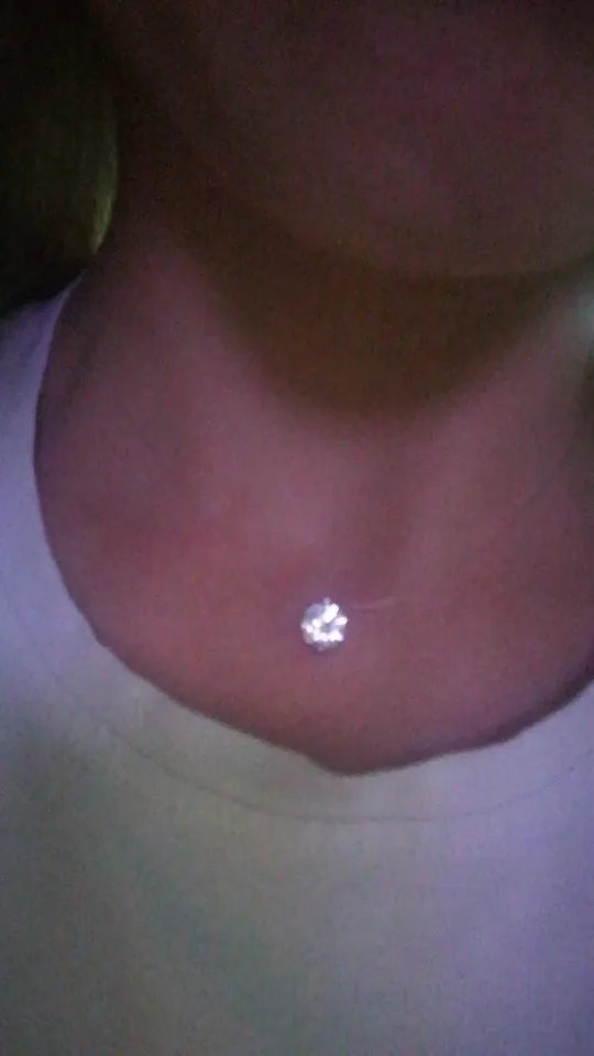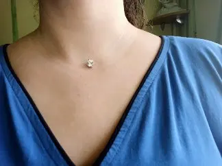 Длинная леска, кулон висит намного ниже ямочки, но он очень аккуратный, красиво блестит!
