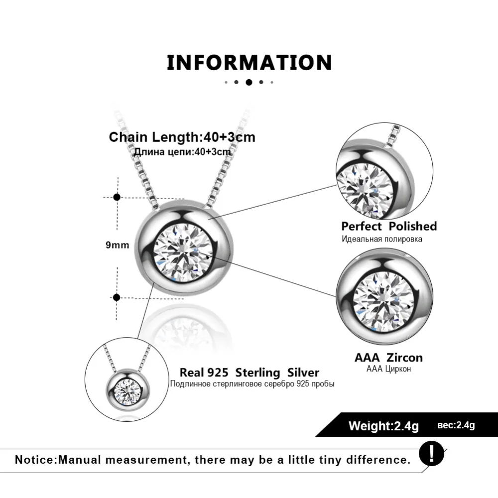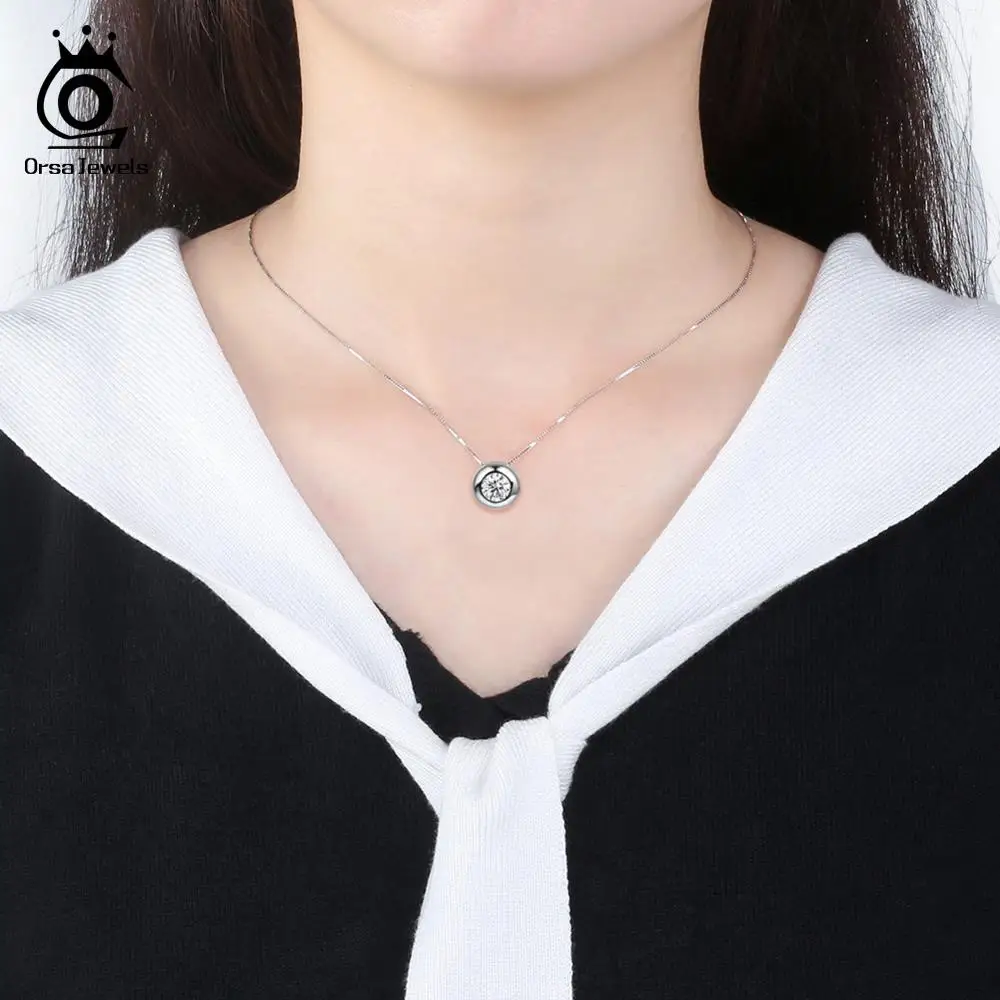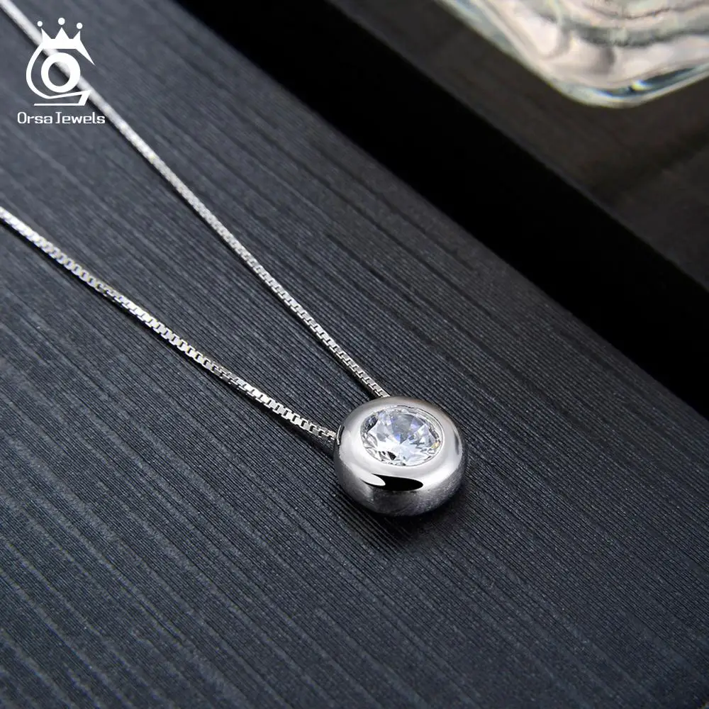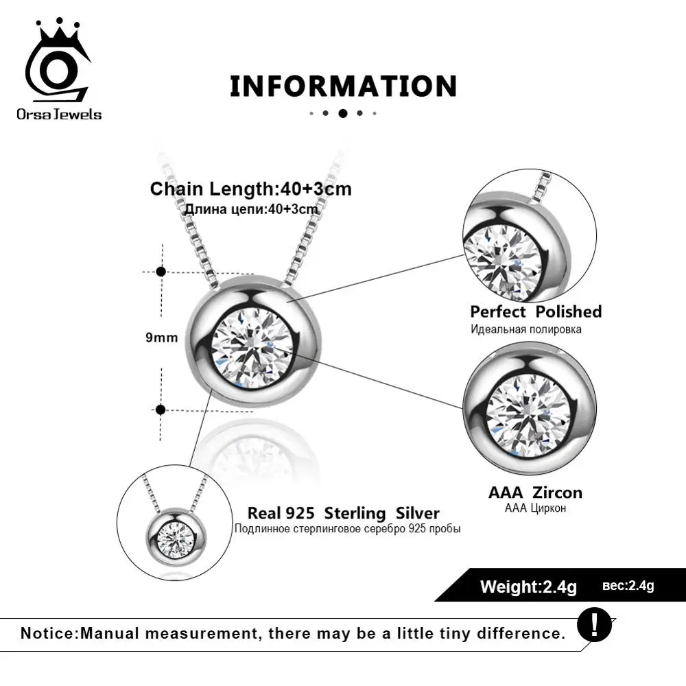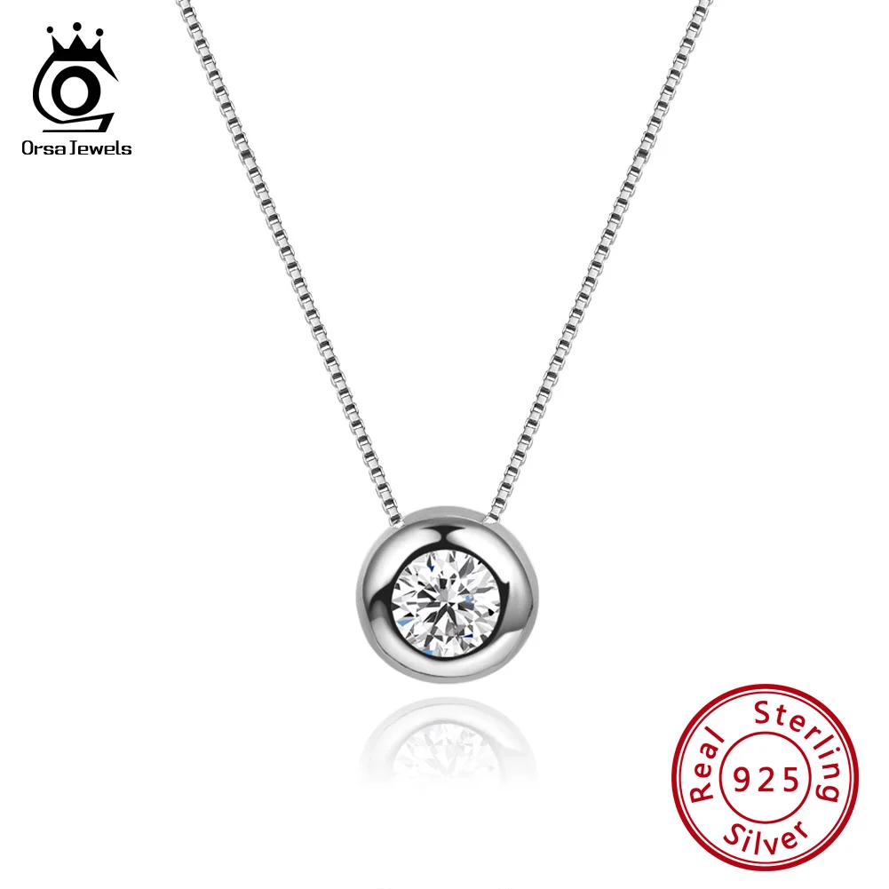 ORSA JEWELS Настоящее серебро 925, женские круглые подвески, ожерелья из стерлингового серебра AAAA CZ, цепочка для ключиц, ожерелье, Женские Ювелирные изделия SN136