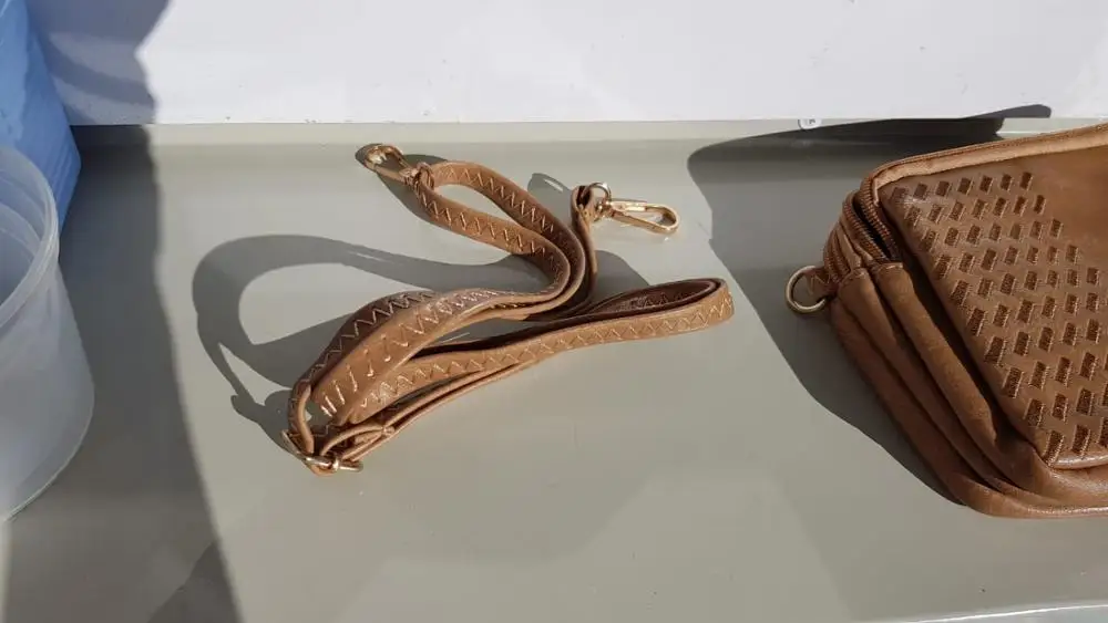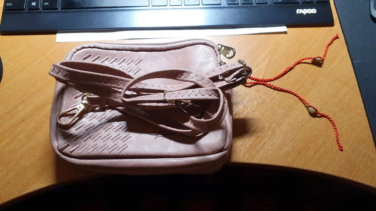 замечательная сумочка. Все швы ровненькие, нигде ничего не торчит. Регулируемый ремень. Размер как кошелек, но все необходимое помещается