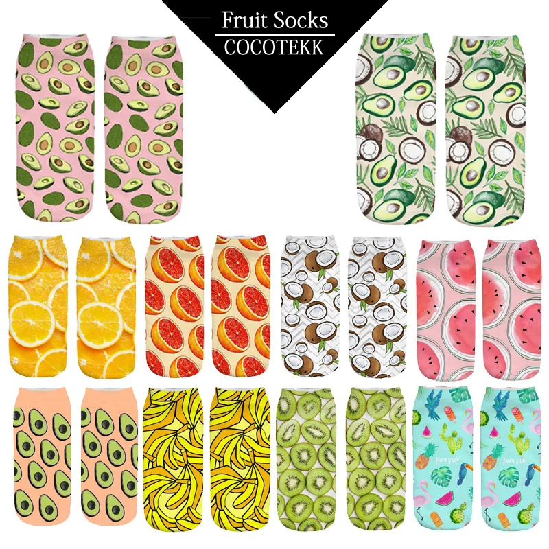 Модные женские носки с 3D-принтом, креативные носки с фруктами, Короткие хлопковые носки с низким вырезом, Забавные милые повседневные носки, подарки для девочек