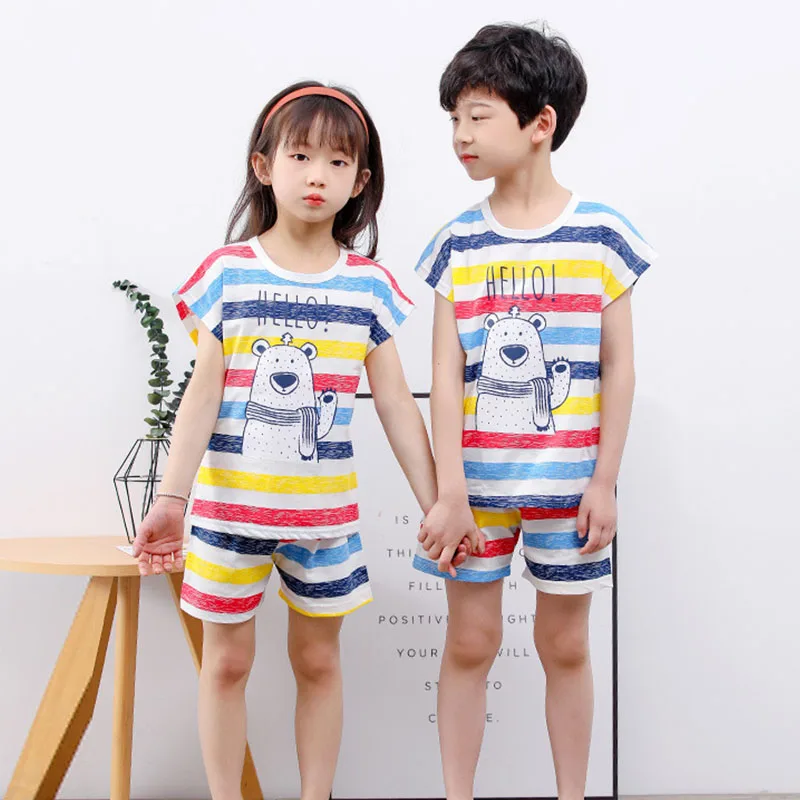Детские пижамы, летний комплект одежды для мальчиков и девочек, лет...