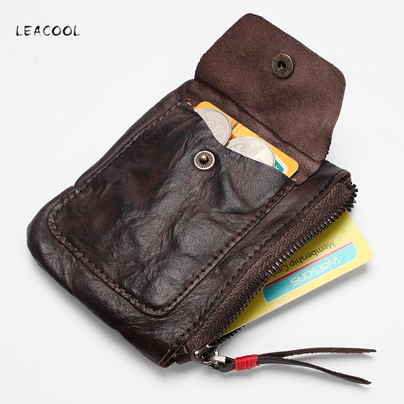 Мужской кошелек из натуральной воловьей кожи, на молнии, в стиле ретро