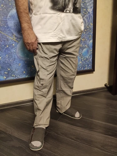 Брюки мужу понравились, лёгкие, летние, приятный цвет, хороший материал. Удобно, что пояс на резинке. Размерная сетка продавца верная, размер хорошо подошёл. Очень долгая доставка, уже и не надеялись, что получим. Но в конце концов, товар прибыл. Заказывали летом.