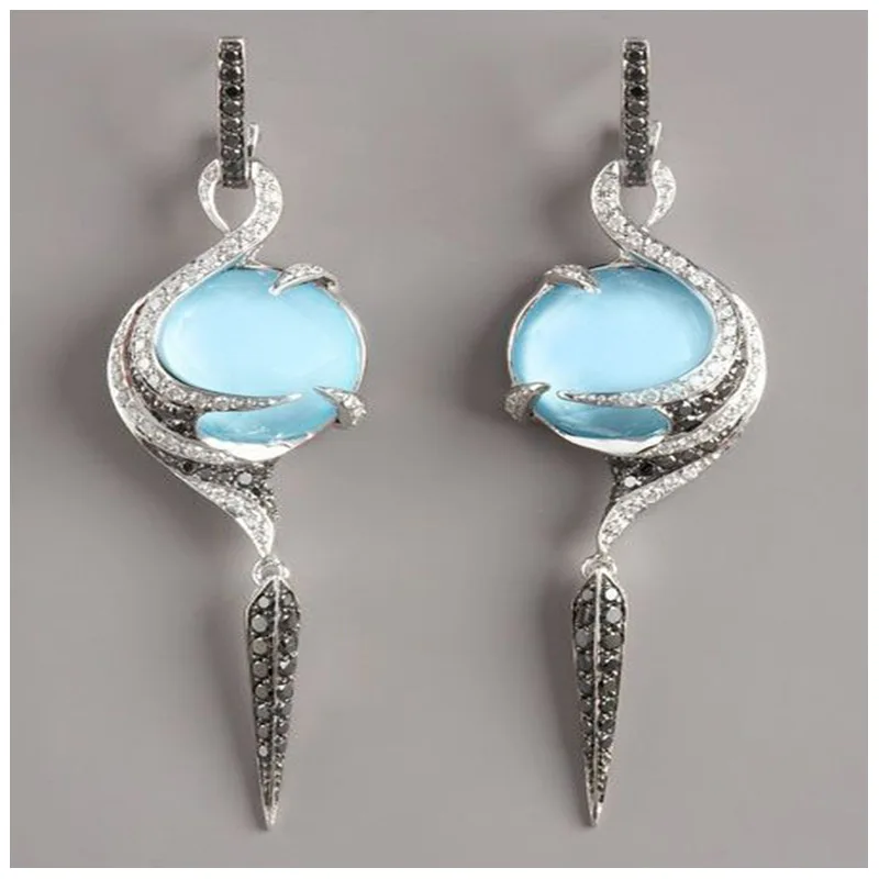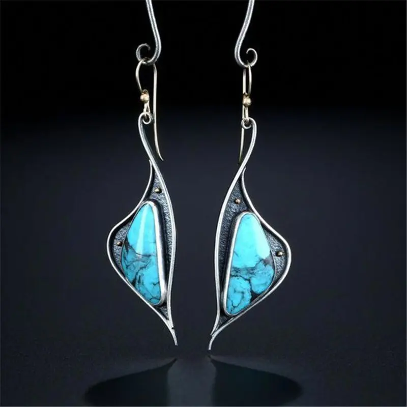 Женские винтажные серьги-подвески, богемные висячие серьги с голубым кристаллом циркония, свадебная бижутерия, эффектные серьги для помолвки, 2019
