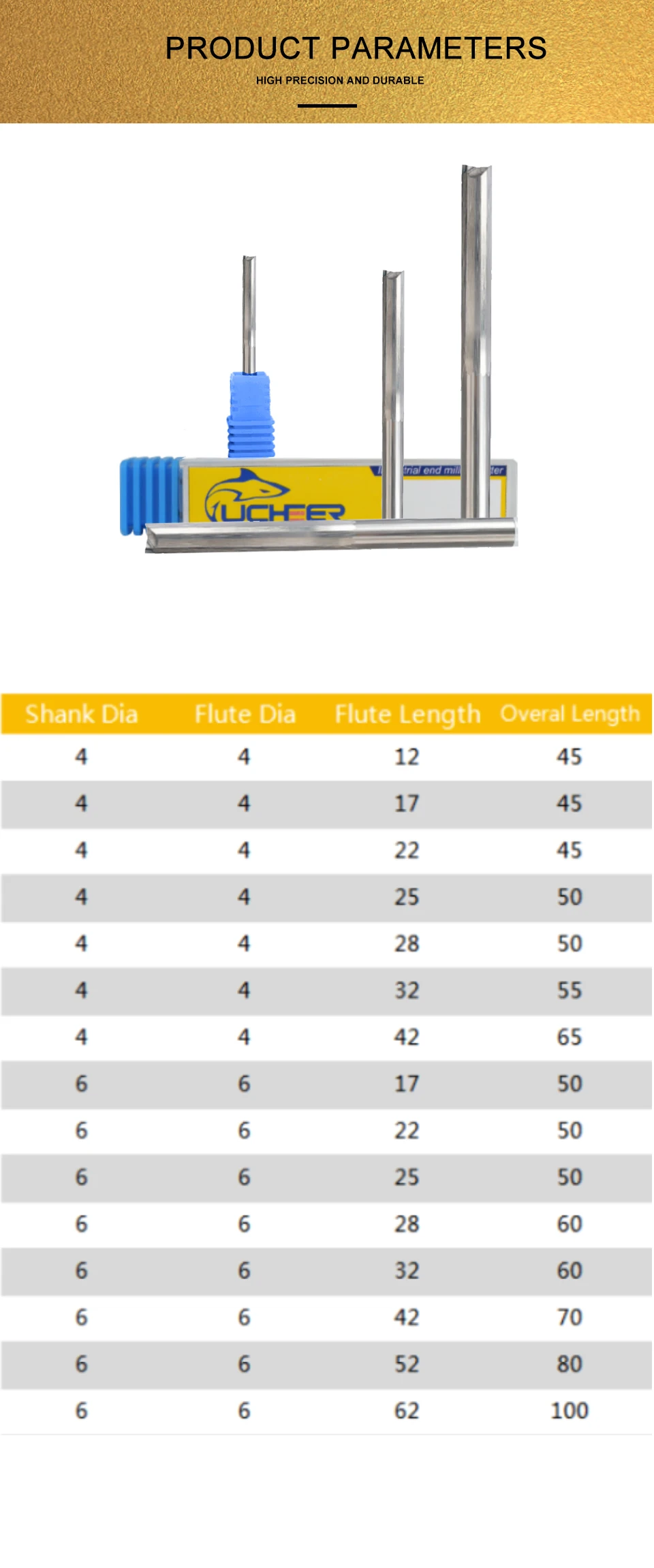 Прямые фрезы UCHEER, твердосплавные насадки для гравировальных станков с ЧПУ, 4 мм, 2 канавки, Прямая продажа с завода