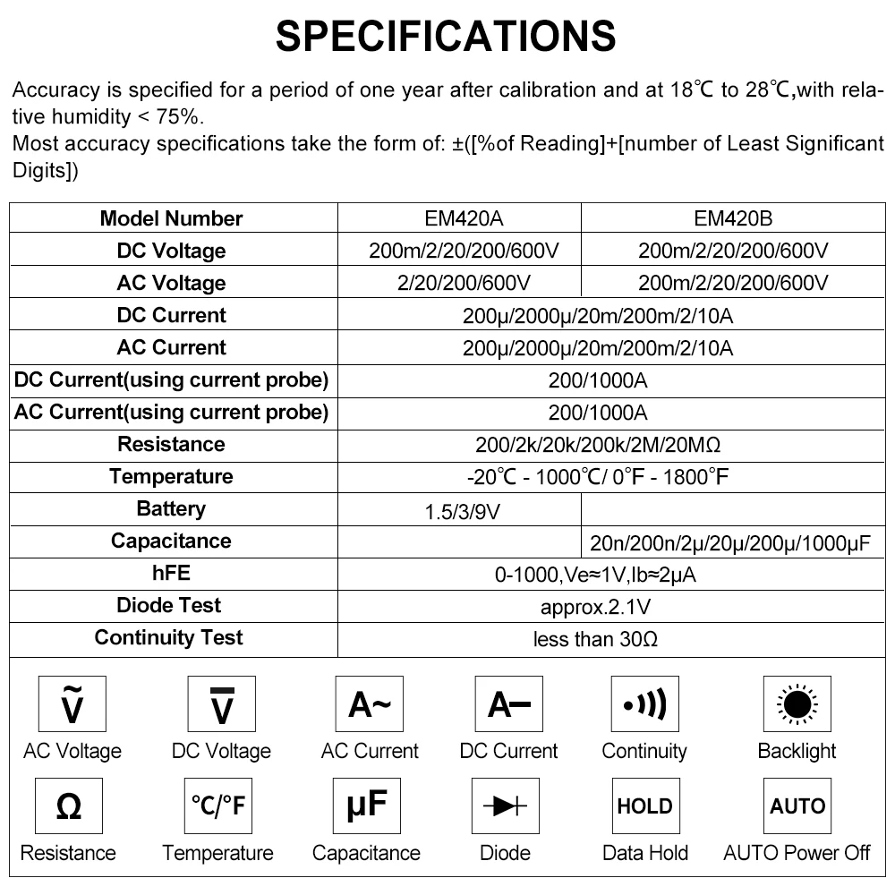 all-sun EM420A EM420B цифровой мультиметр ACDC напряжение и ток мультиметр с непрерывностью диода батарея ёмкость тестер