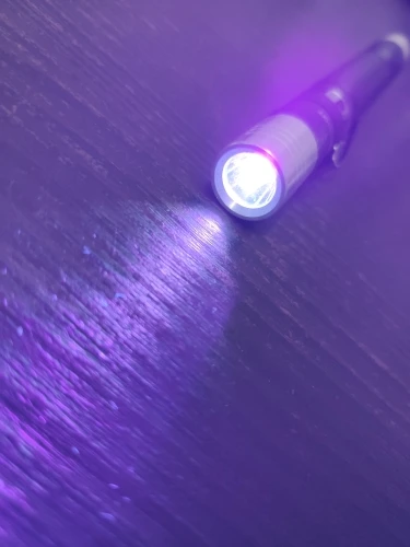 Яркий фонарик, хороший ультрафиолет. Под каждый фонарик своя батарейка(ААА). Брал для прозрачного маркера, видно хорошо. Пришёл быстро(14 дней). Отправлен был очень быстро.
