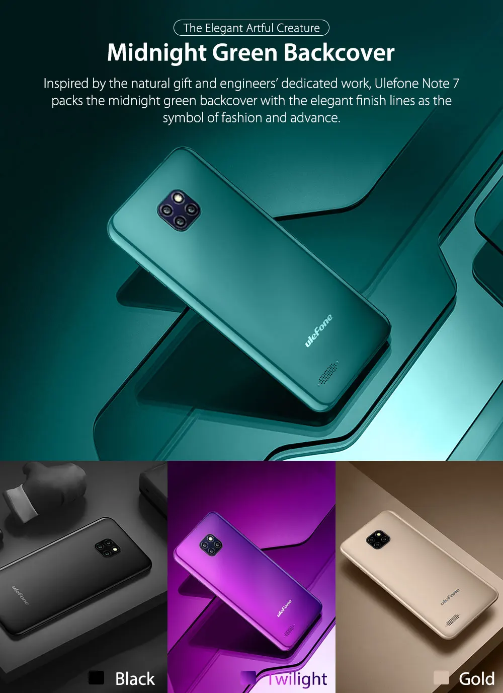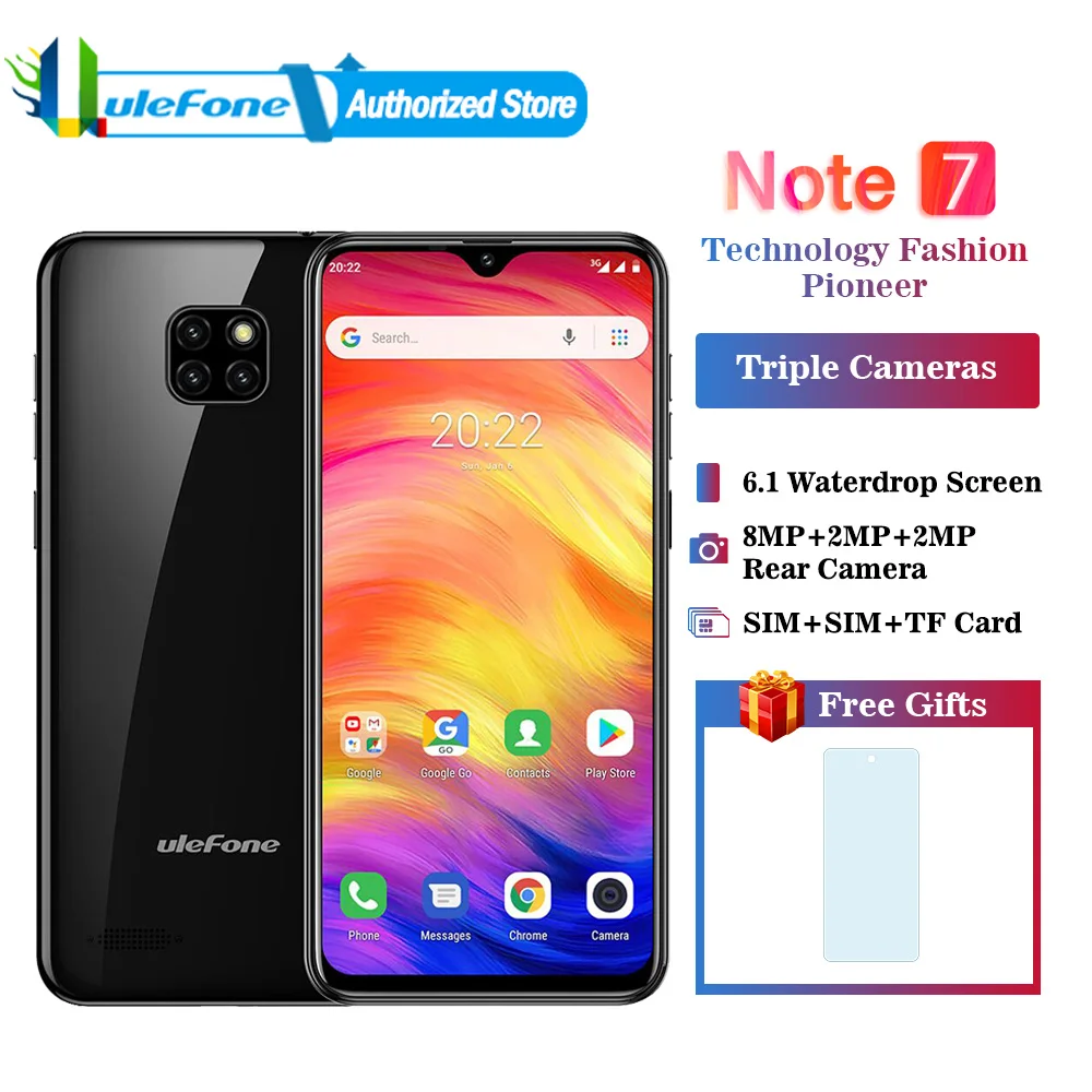 Смартфон Ulefone Note 7, экран 6,1 дюйма, Android 10,0, аккумулятор 3500 мАч, процессор 19:9, ПЗУ 16 Гб, тройная камера, функция распознавания лица