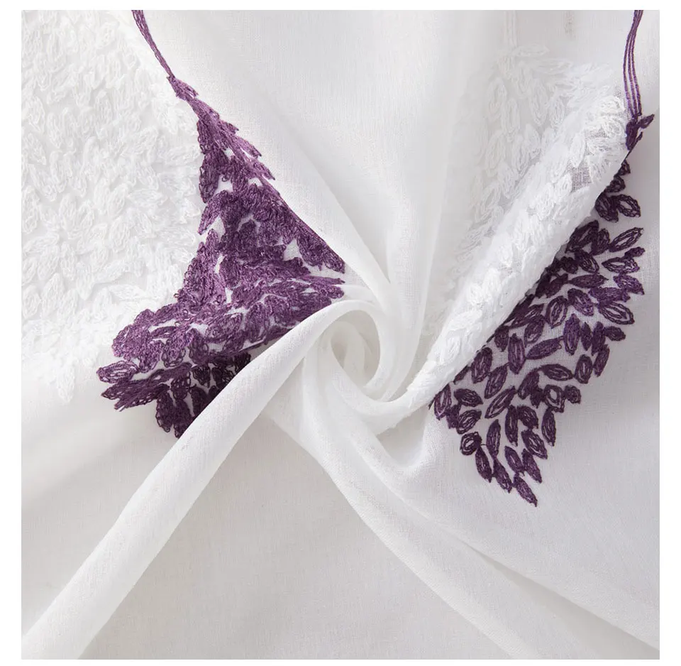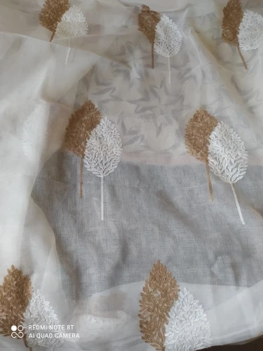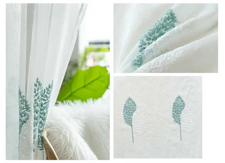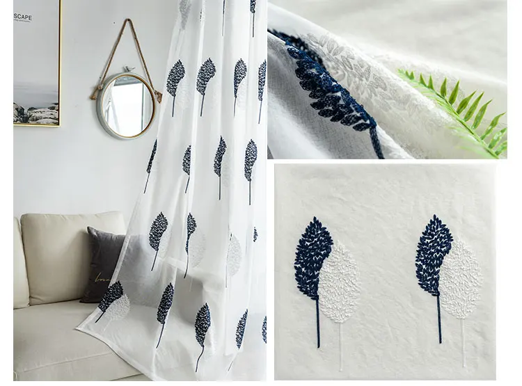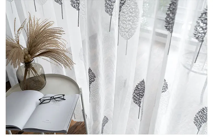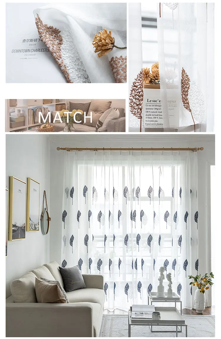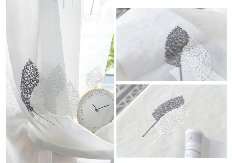 Занавеска CDIY из тюля, белая, для гостиной, с вышитыми листьями