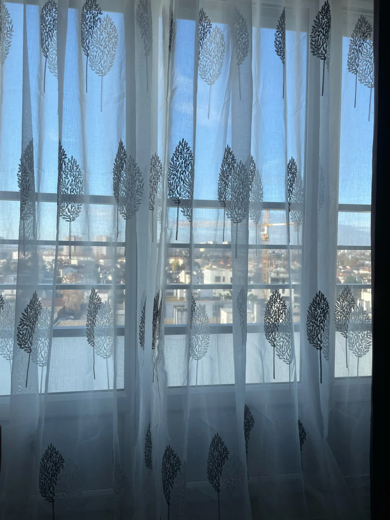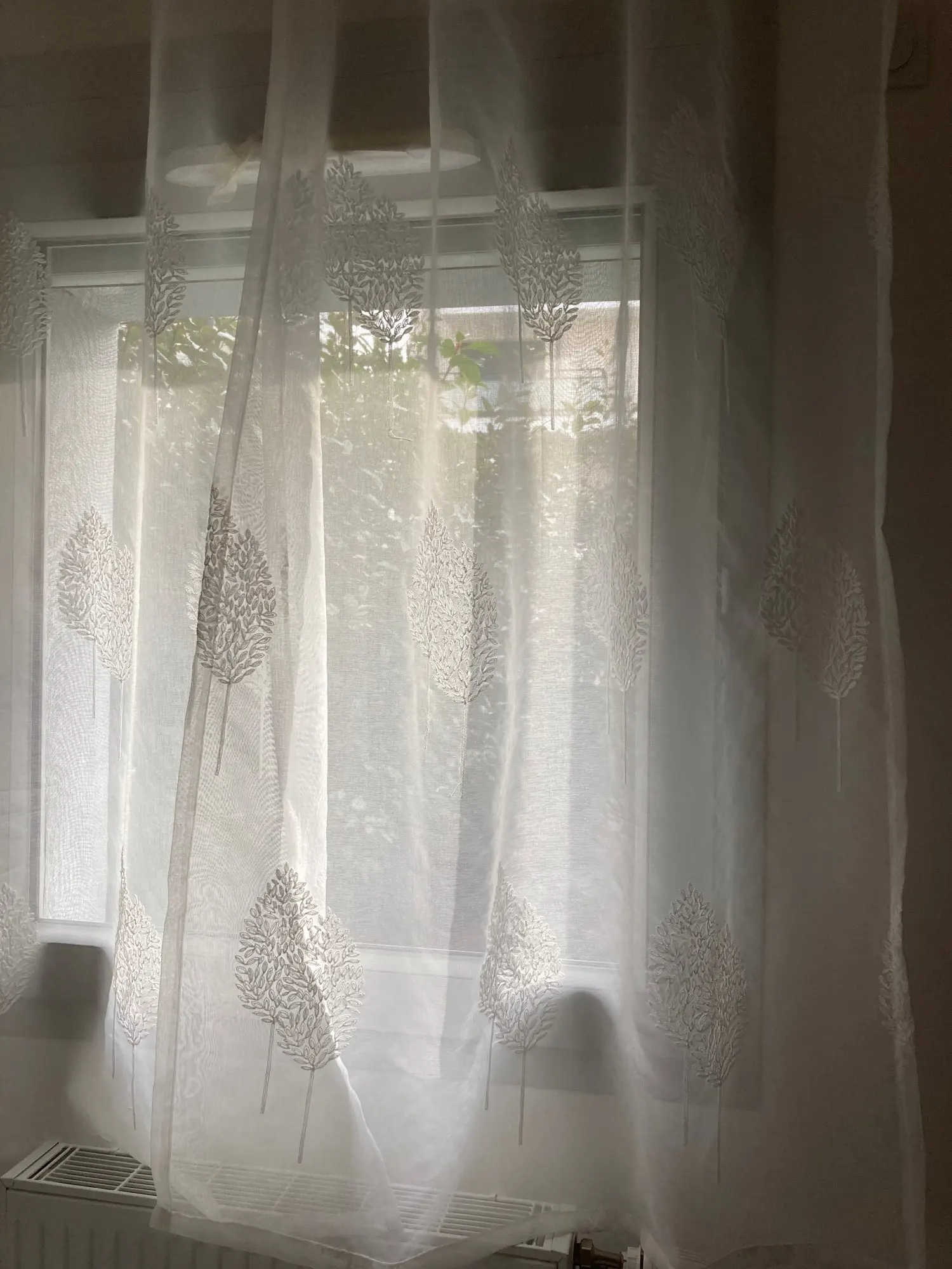 Очень хорошая тюль. Вышивка красивая и цвет яркий. Только думала что листики будут помельче, но они с ладошку))Ехала 33 дня