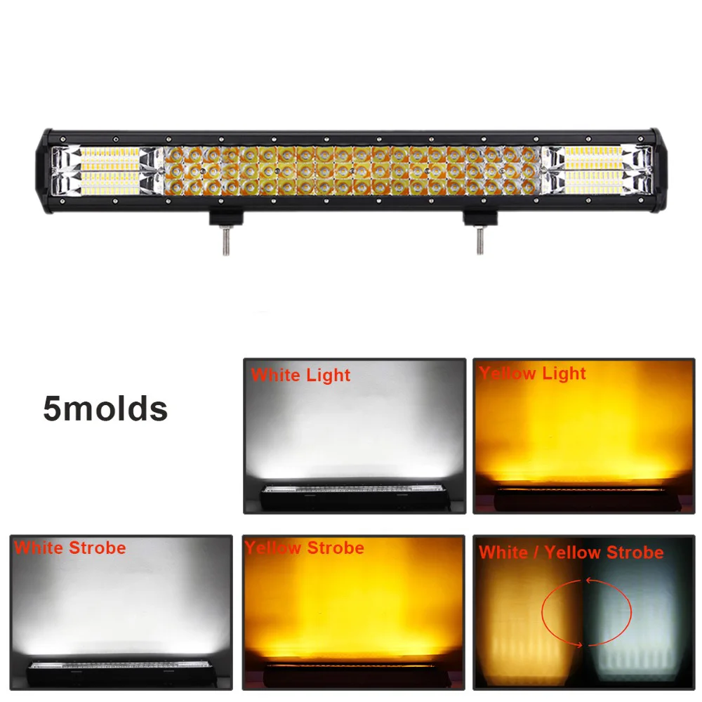 Трехрядная Светодиодная лампа белого и янтарного цвета, 23 дюйма, 324 Вт, комбинированная световая балка для внедорожников, грузовиков, лодок, кроссоверов, квадроциклов, полноприводных автомобилей, Стробоскопическая светодиодная балка