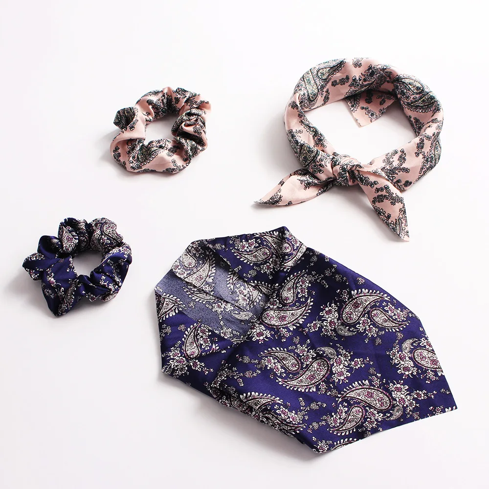 Атласные шелковые резинки для волос с цветочным принтом, длинные ст...