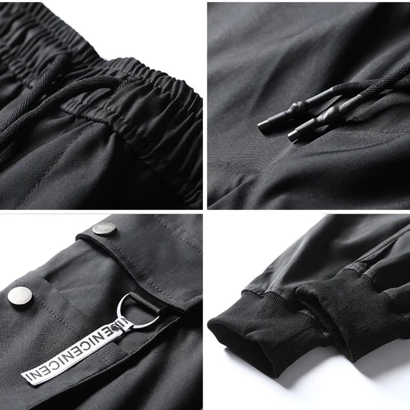 Брюки-карго мужские, однотонные, черные, свободные, повседневные, с карманами, эластичным поясом, длиной до щиколотки