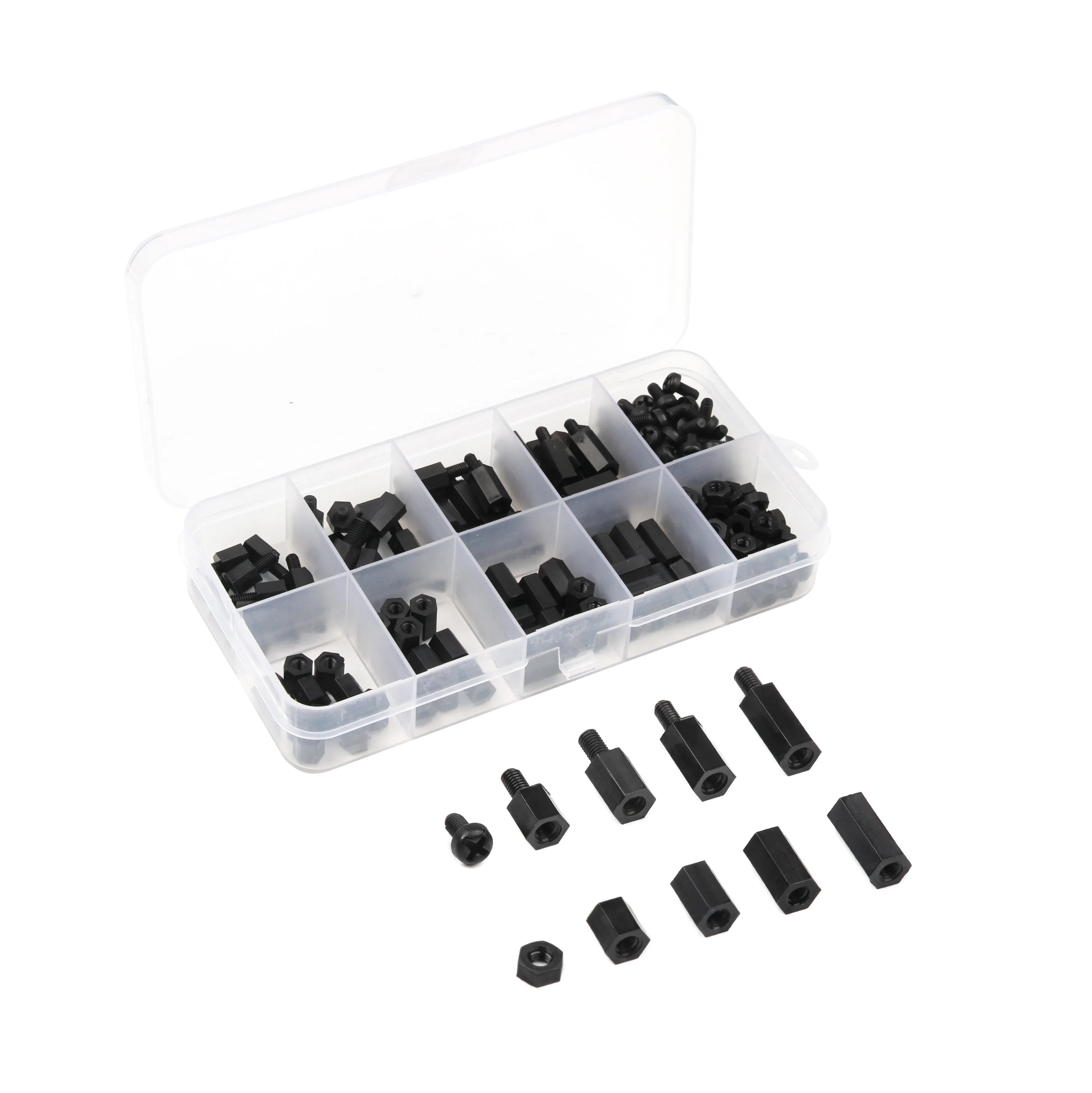 180 шт черный M3 Нейлон шестигранные прокладки мужской/Винты мама гайки стоячий комплект с пластиковой коробкой для электроники ПК доска