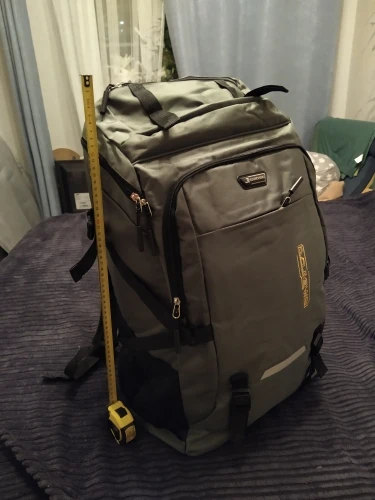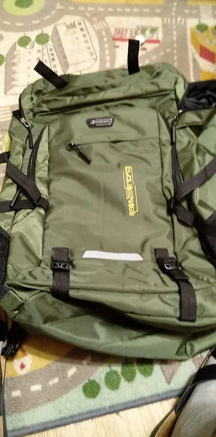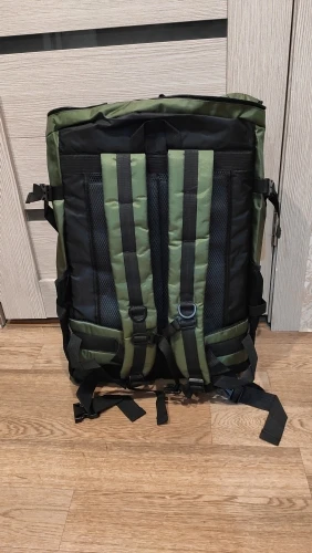 Рюкзак огромный, как и хотели. На спине сидит удобно. Вся фурнитура рабочая. Доставка быстрая, до двери. Единственный минус впереди немного испачкан как будто маслом, не оттирается. Но не столь критично, спор не стала открывать.