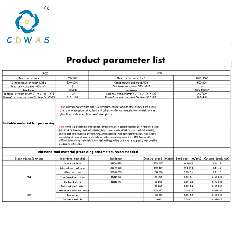 ЖесткостьPCD>8000HV, CBN:3500-5000HV