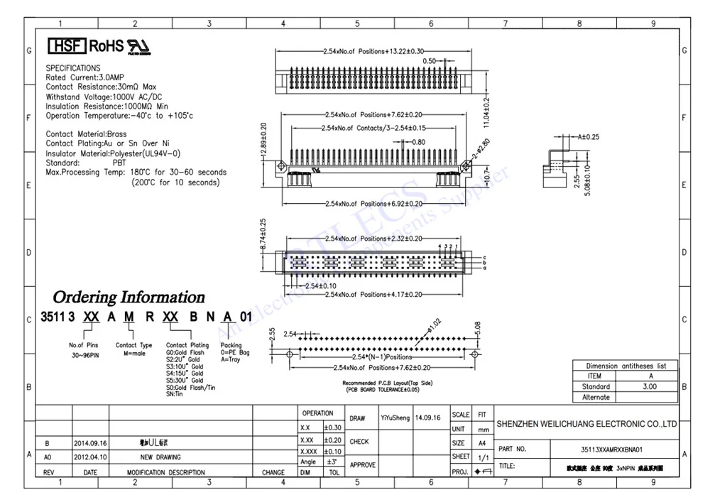 DIN 41612 разъем 3-мя рядами красивых 30 позиций Din Женский розетки сосуда под прямым углом через отверстие для печатного 3x10 30 Pin шаг 2,54 мм