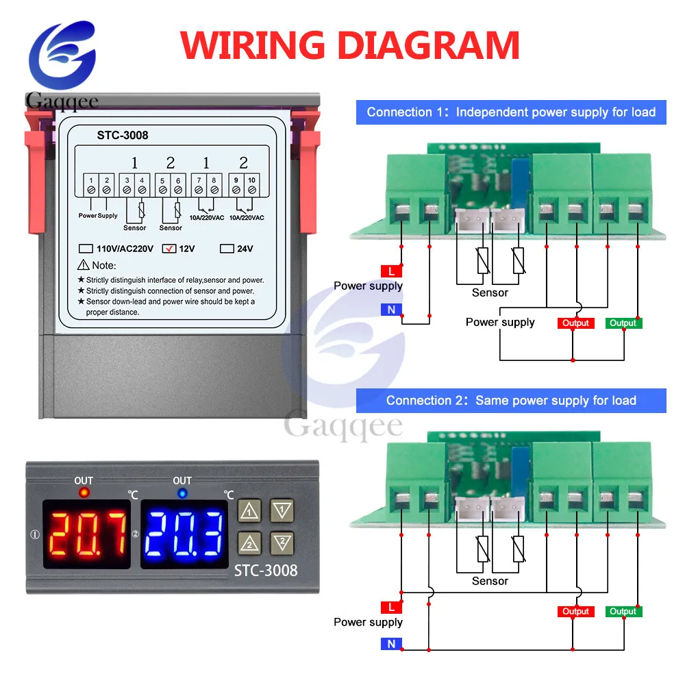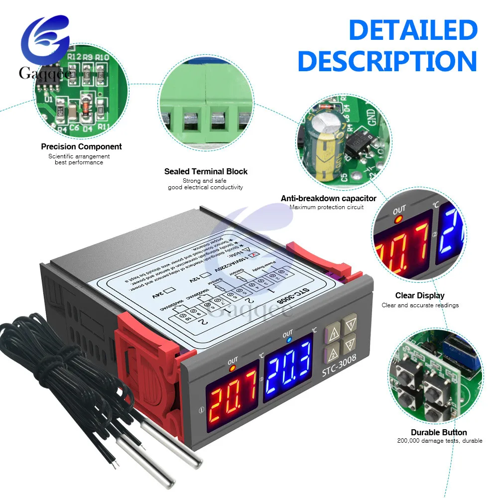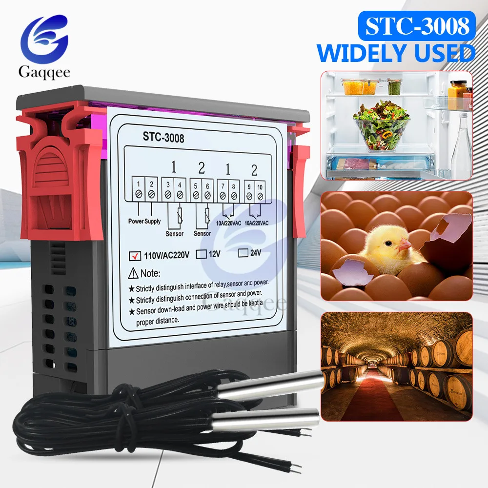 STC-3008 двойной цифровой регулятор температуры два реле выход термостат с датчиком DC12V 24V AC110-220V домашний холодильник прохладное тепло