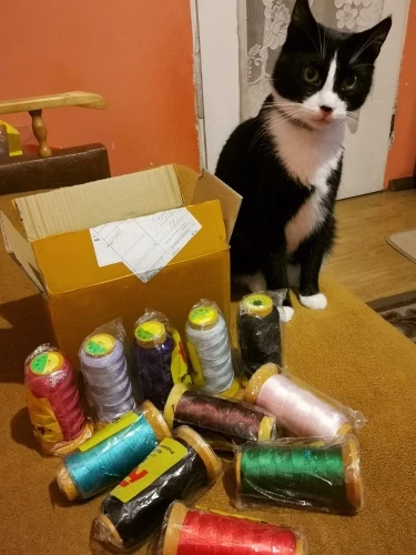 Очень красивые и качественные нитки. Продавец упаковал их в коробку. Ничего не поломалось в дороге. Кошечка передает спасибо за коробку, сразу полезла в нее. Коричневые нитки брала чтоб заштопать дермантин на двери. По цвету подошли норм.