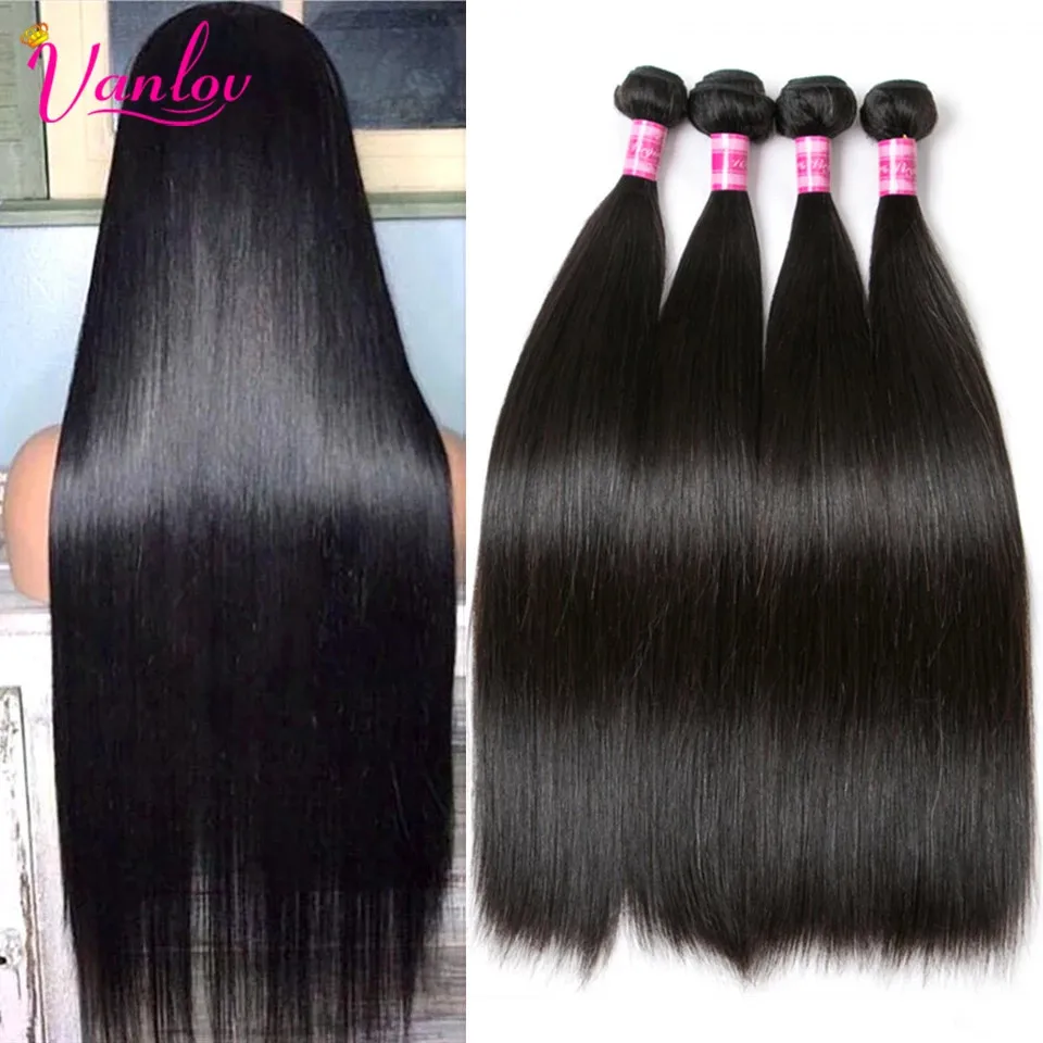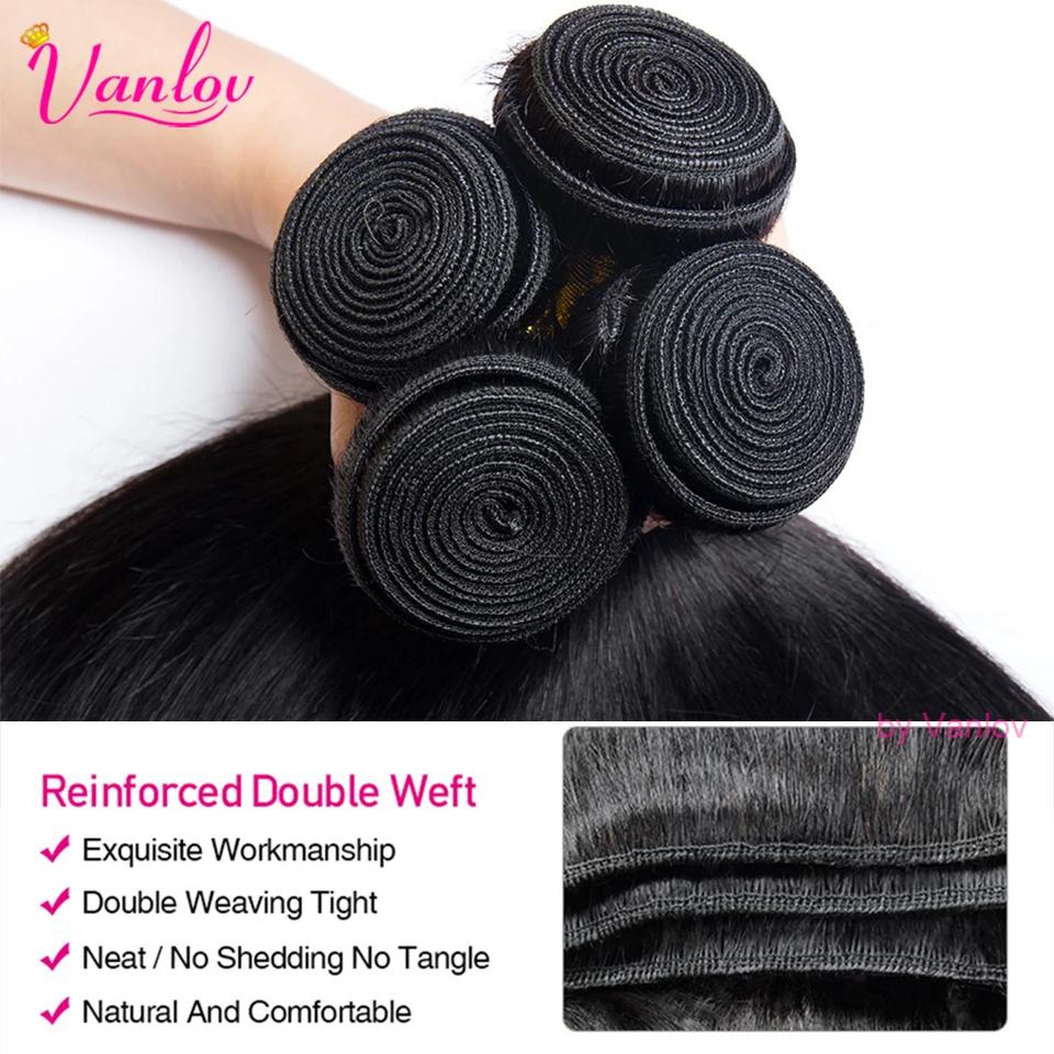 Vanlov перуанские прямые волосы, человеческие волосы, пряди для наращивания, натуральные черные и струйные черные 100 искусственные волосы с двойным переплетением