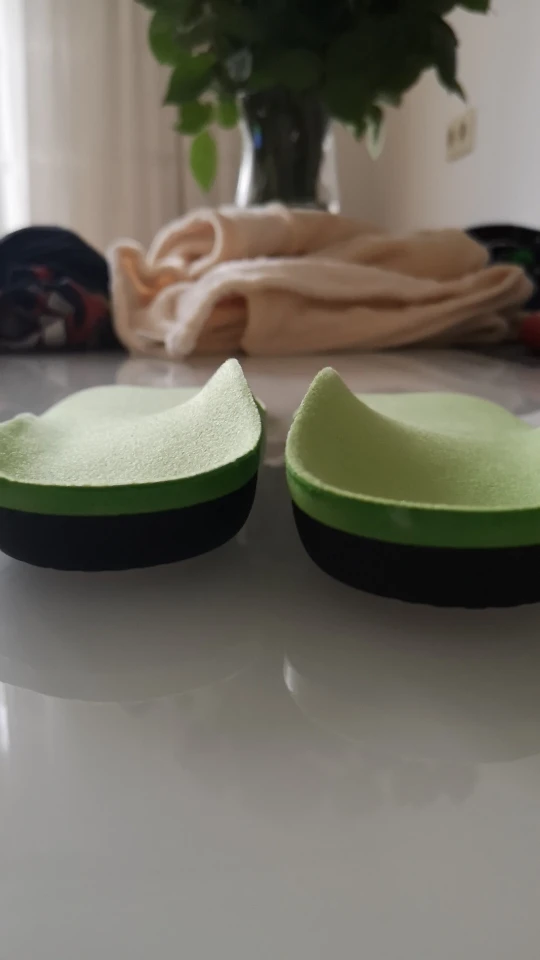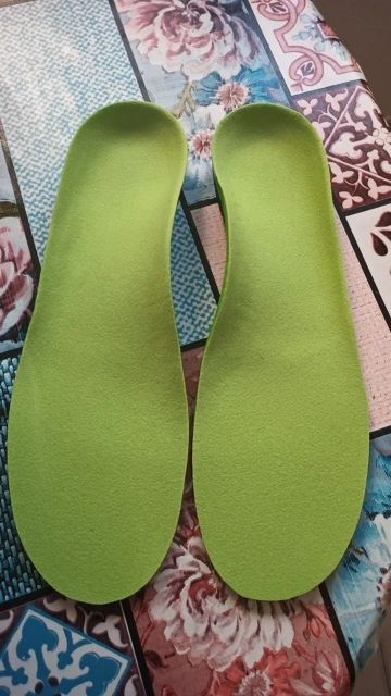 Я сделал размер 36/37, подошвы идеальны, мы можем их порезать. Они выглядят очень комфортно, очень хорошего качества. Я хотел бы оставить второй отзыв, если бы они были удобны. Черная часть подошвы жесткая, зеленая часть гибкая, оранжевая часть немного липкая. Есть небольшой подарок в дополнение к подошве, большое спасибо!