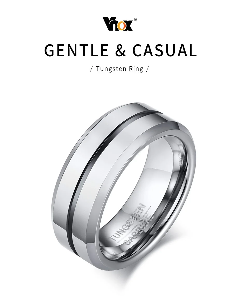 Мужское вольфрамовое кольцо Vnox, повседневное тонкое обручальное кольцо 8 мм из карбида вольфрама