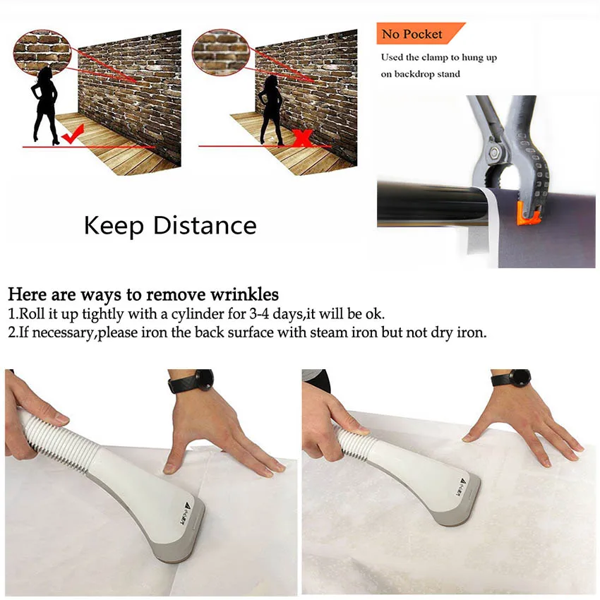 Для фона из полиэстера вы можете мыть его или гладить, чтобы удалить складки, складки легко снимаются.