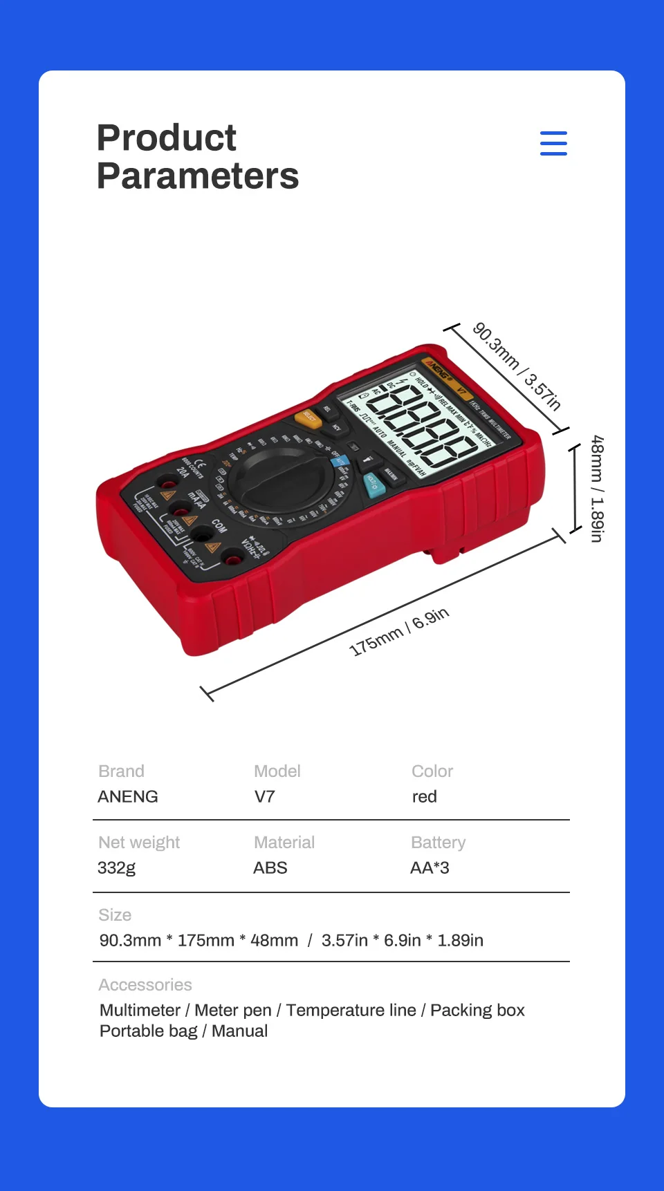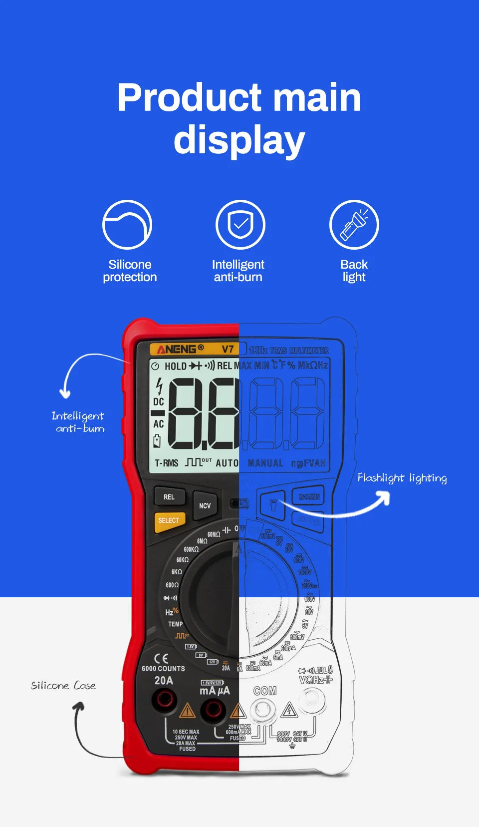 Мультиметр пришёл с замятым правым нижним углом прорезиненного интегрированного чехла. Открыл спор. Продавец изворачивается и не желает компенсировать брак. У него же покупал другой мультиметр, то же с браком приехал: там испорчена резьба на одном из сменных шупов. Разочарован я продукцией Anengen...