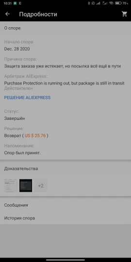 Товар не был доставлен. Продавец неоднократно продлевал срок защиты товара. Моё терпение закончилось через ТРИ месяца ожидания, после чего я открыл спор. Продавец в свою очередь оспорил мои претензии и предложил ждать ещё, ссылаясь на сложности с доставкой в связи с пандемией. Так как товар был нужен мне пару месяцев назад как подарок, а теперь уже не актуален - я отклонил это предложение, и через некоторое время АлиЭкспресс принял решение о возврате мне денег. Даже если товар будет доставлен в будущем - возвращённые мне деньги послужат лишь некоторой компенсацией за мои неудобства, связанные с недоствленным товаром.