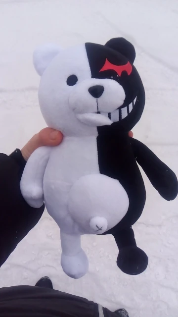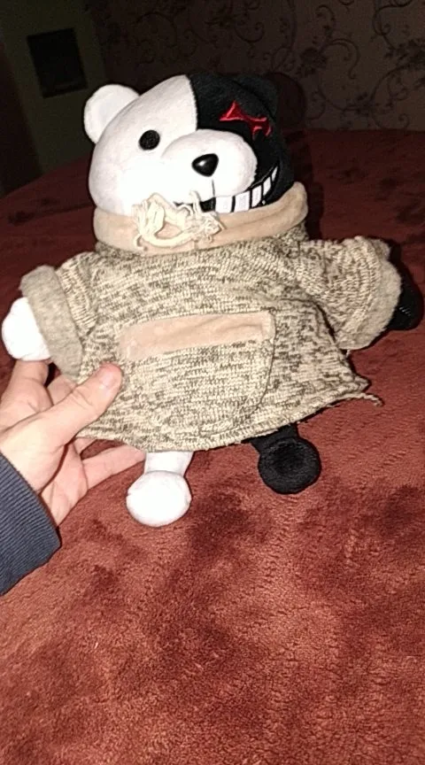 Монокума (или в простонародье Монописька) пришёл неожиданно быстро, думал будет месяц или два , а приехал через неделю (Живу в Подмосковье), качественно сделано,на ощупь приятна+сестра отдала кофточку от игрушки и получилось это чудо