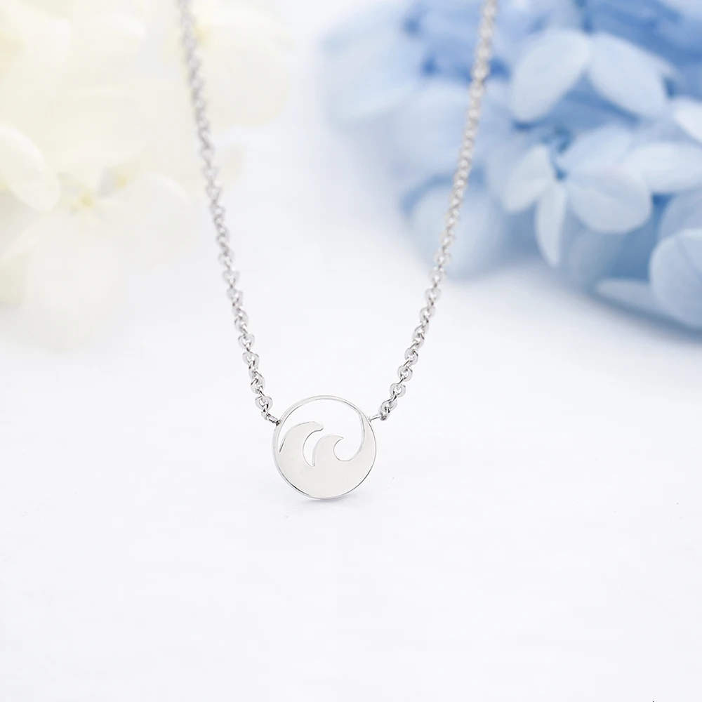 Океанская волна ожерелье Surf кулон ожерелья море океан колье с подвеской для женщин из нержавеющей стали, пляж ювелирные изделия подарок для невесты