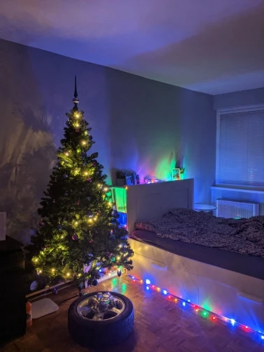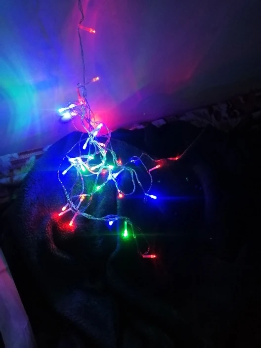 Гирлянда классная, работает, свет тёплый, несколько режимов работы. Хочу разноцветную ещё теперь