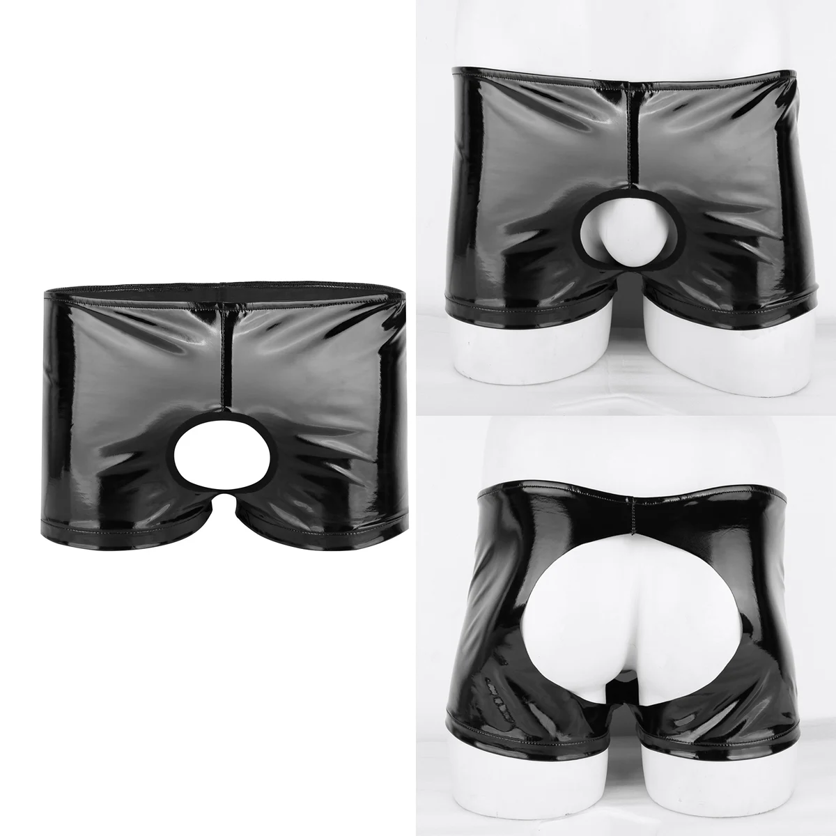Мужские Блестящие боксеры YiZYiF, сексуальное нижнее белье из лакированной кожи, с отверстием для пениса, Длинные Трусы-боксеры, Короткие трусы с резиновым пенисом
